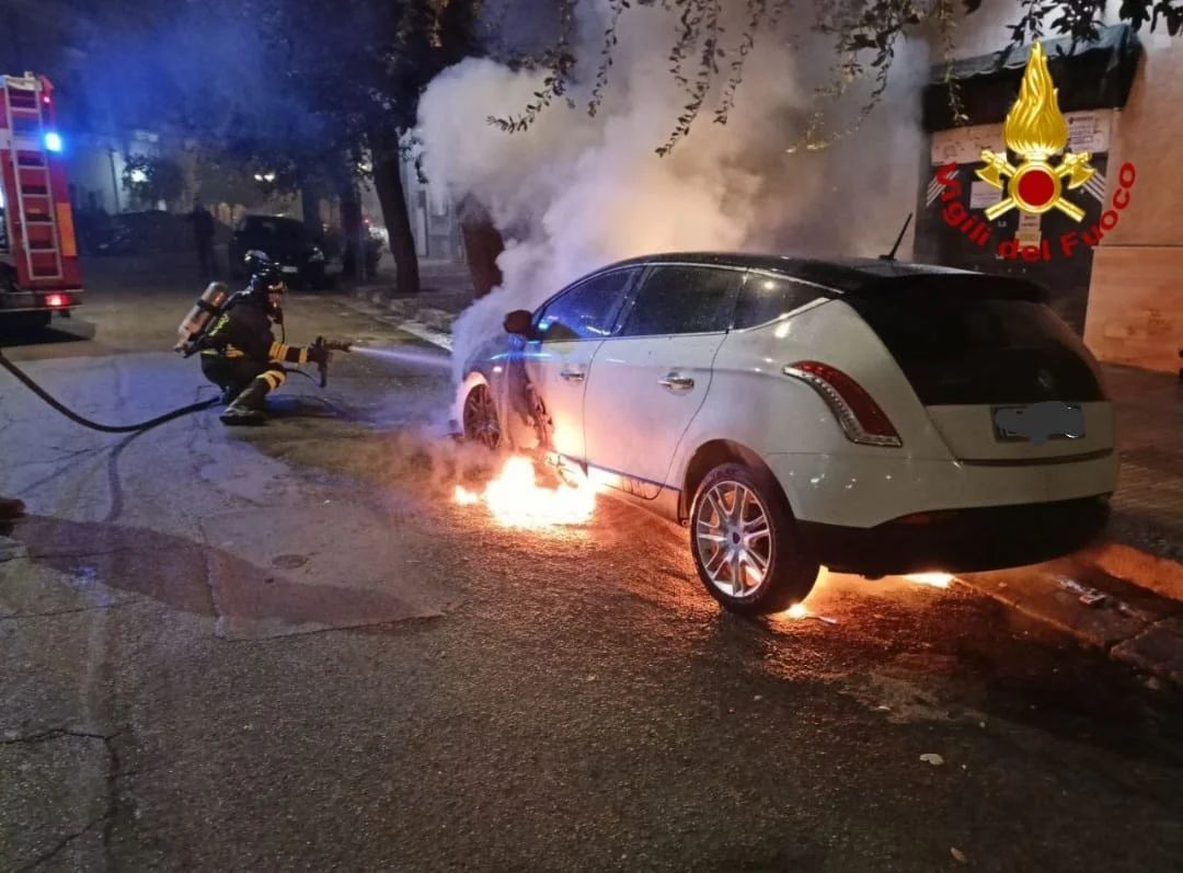 Incendio di un’auto ieri sera in via Latiano. Le fiamme si sono propagate e hanno avvolto l’auto intorno alle 19.
