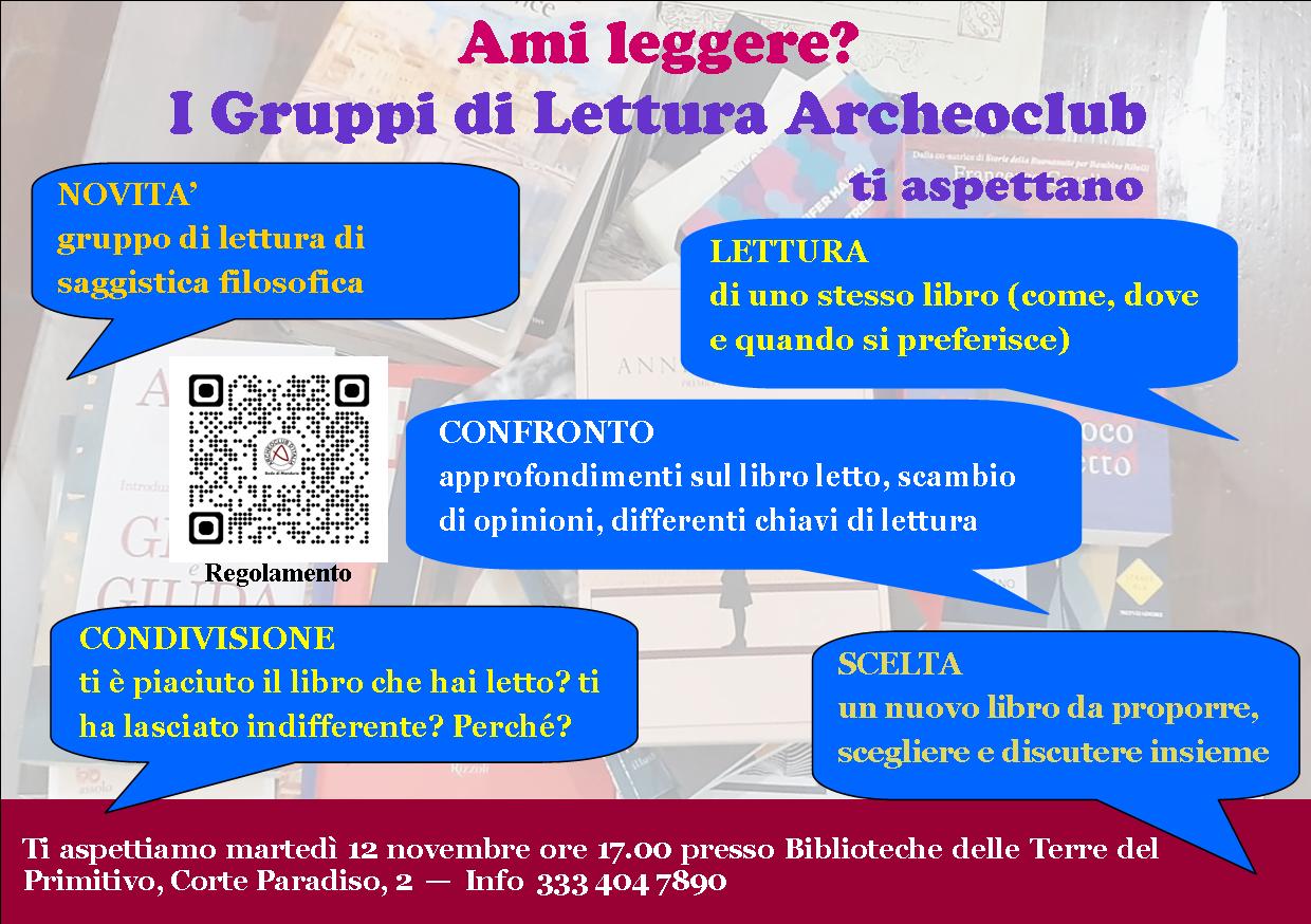 «Il libro diventa così non solo veicolo di arricchimento individuale, ma anche occasione per riaprire una via di comunicazione interpersonale, che l’invasiva presenza dei social media tende sempre più a precludere» è riportato in una nota di Archeoclub..