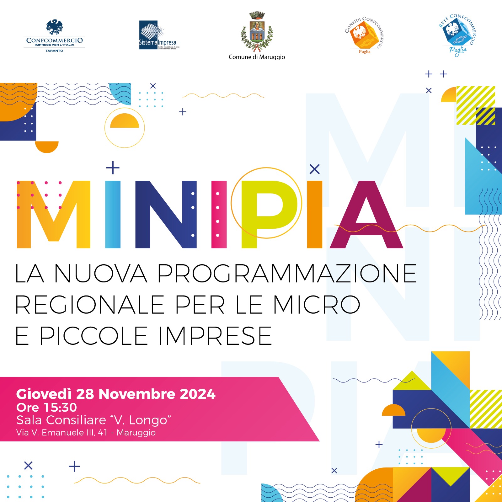 Nuovo appuntamento di presentazione della programmazione regionale delle misure di finanza agevolata per le imprese, il 28 novembre prossimo a Maruggio con un workshop ‘Minipia - la nuova programmazione regionale per le micro e piccole imprese”.