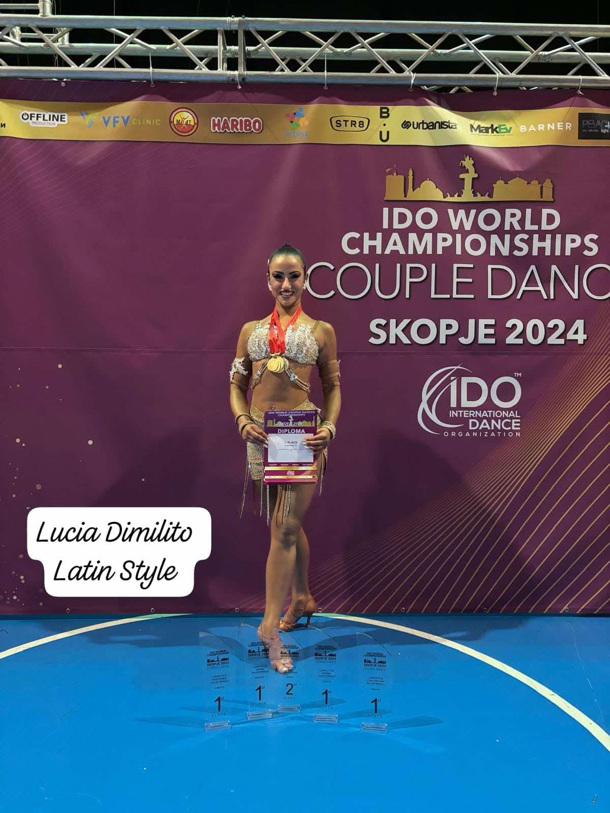 Riconferma il suo titolo di campionessa del mondo Latin Show e Latin Style Femminile Adulti Lucia Dimilito, con ben 5 medaglie d'oro e un titolo di vice campionessa mondiale Ido 2024.