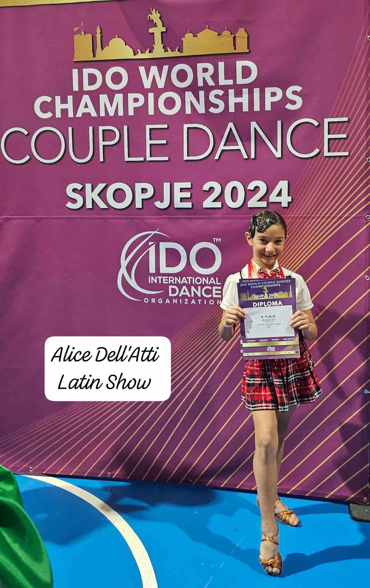 Alice Dell’Atti, a soli 9 anni e alla sua primissima esperienza su 51 atlete, nel Latin Style Children è arrivata in finale e si è classificata 4° in Samba, 7° in Cha cha cha, 6° in Rumba e Jive e 5° in paso doble; inoltre un ottimo 4° posto nel Latin Show Children con la coreografia “Il dono”.