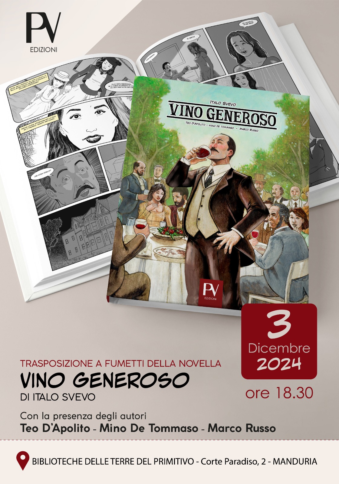 “Vino Generoso” , novella di Italo Svevo, una delle opere in assoluto più riuscite del narratore triestino, in cui troviamo tutta la sua cifra stilistica.