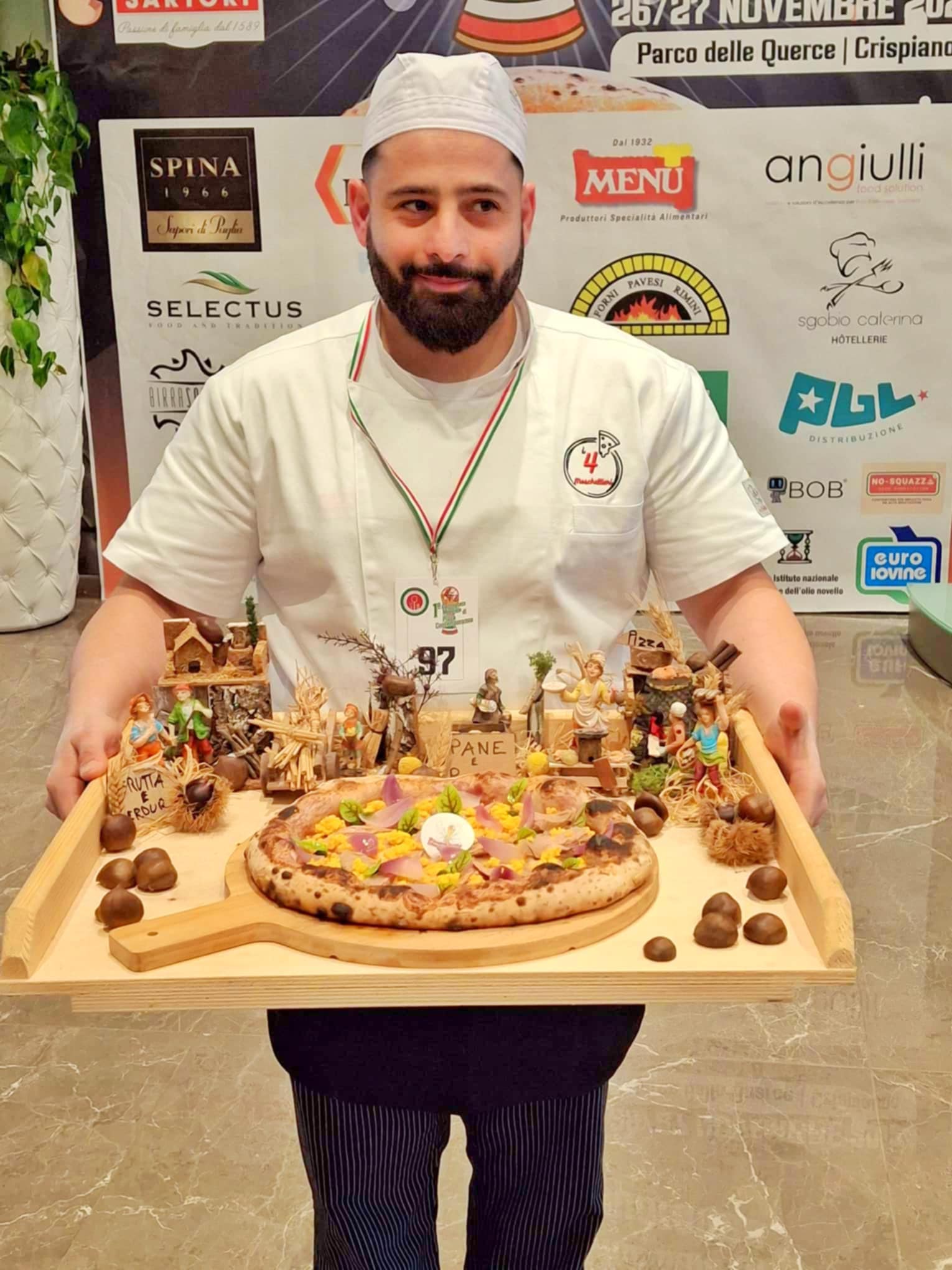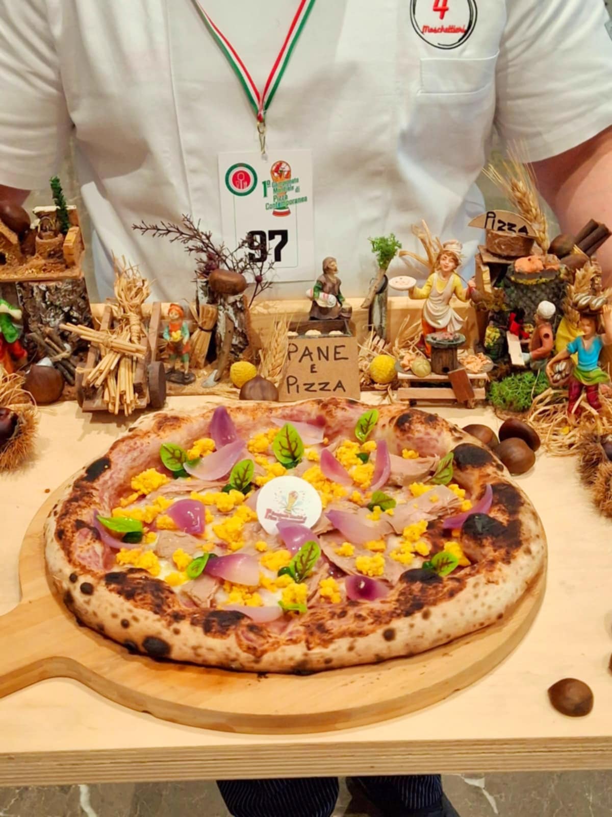 Non solo. Come si può vedere dalle foto, la presentazione di questa pizza al campionato mondiale è stata superlativa, tanto da meritare il primo premio.