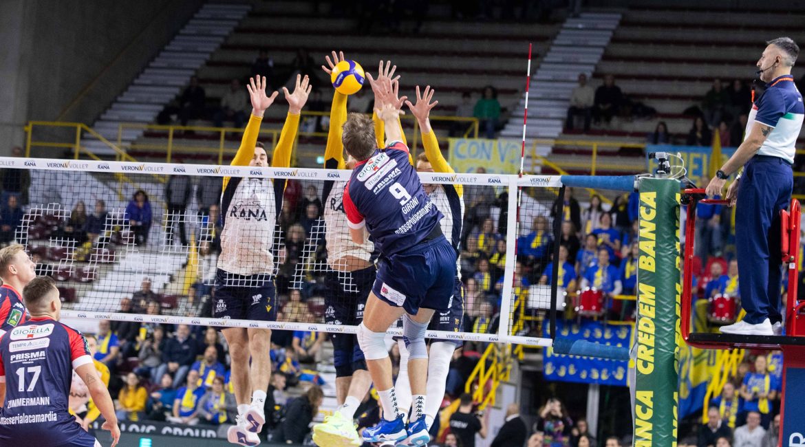 A Verona i rossoblù tengono testa ai padroni di casa soltanto per due set, trascinati da Lanza e Hofer. Verona ha la meglio 3-0 (25-20, 25-22, 25-15). Tanti gli errori al servizio in questo match per i rossoblù che hanno consentito ai padroni di casa un gioco brillante fin dall’inizio. Nel secondo parziale gli ionici si rendono protagonisti con una bella rimonta firmata Lanza, ma gli scaligeri mettono a segno lo strappo finale con Keita e Mozic sugli scudi. Il terzo parziale invece, è a senso unico, con Keita che sale in cattedra mettendo a terra 17 punti finali.