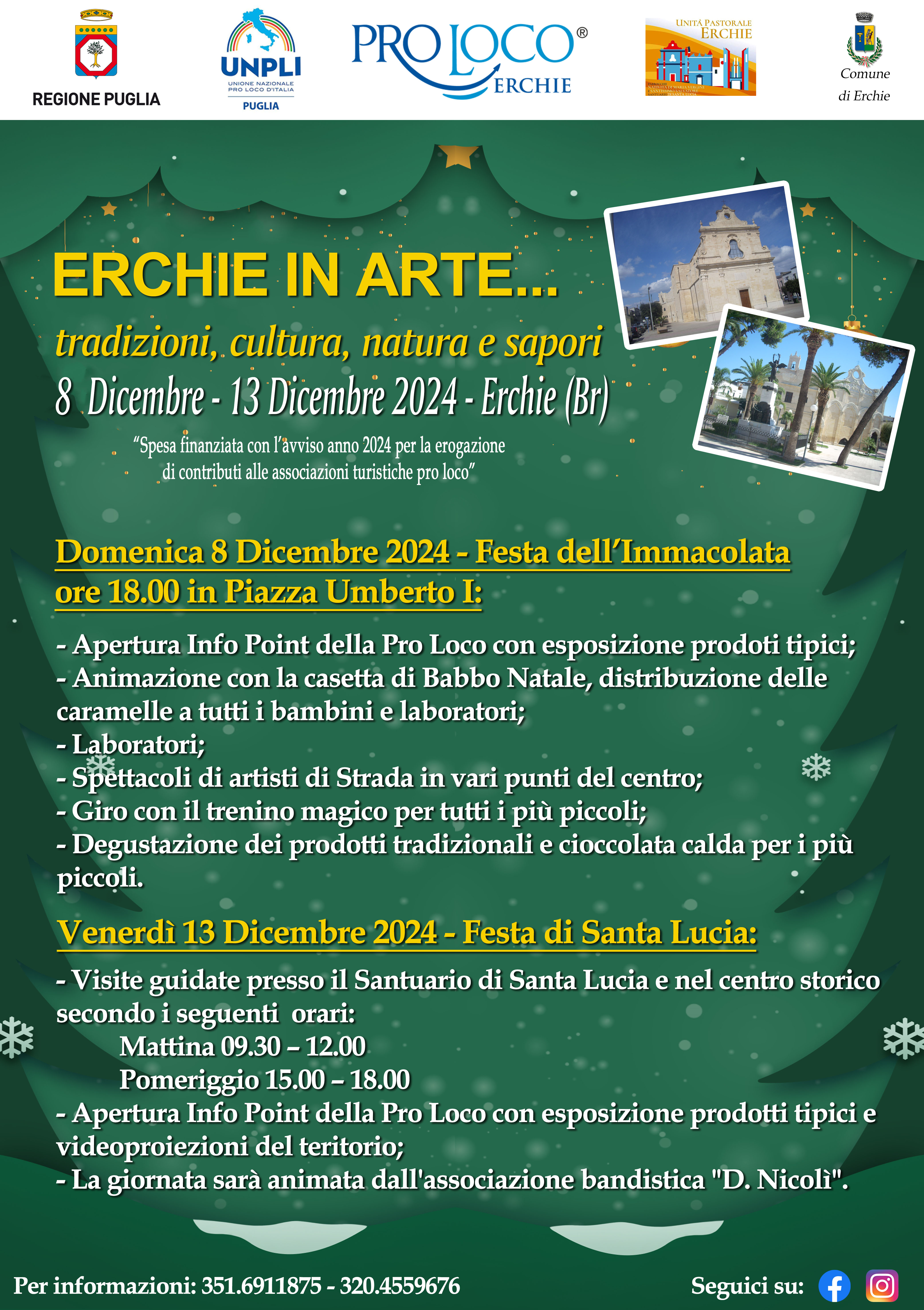 L’associazione Pro Loco di Erchie presenta “Erchie in Arte..tradizioni, cultura, natura e sapori”, un’iniziativa legata alla valorizzazione del patrimonio storico e culturale.