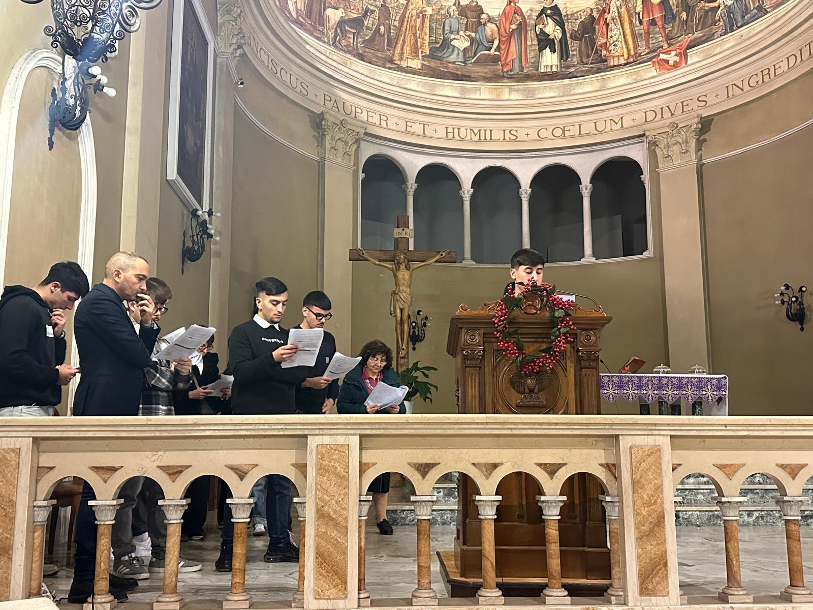 Poi, una volta che i bimbi, sicuramente un po’ infreddoliti, si sono allontanati, siamo stati noi, maturandi dell’istituto Del Prete-Falcone a leggere i testi scelti con le professoresse di Lettere Mancino, Biasi e Pichierri: dal microfono dell’ambone, abbiamo, con sincera adesione e non senza emozione, declamato parole di bellezza e poesia, frasi di invincibili ragionamenti, appelli accorati di veri operatori di pace (San Giovanni Paolo II, il Mahatma Gandhi, politici, poeti, ambientalisti, educatori, ambasciatori e altri ancora che hanno tenacemente voluto la pace, pur appartenendo a nazionalità, religione, livello culturale e sociale diversissimi.
