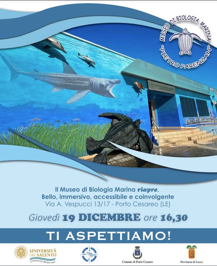 Sarà inaugurato giovedì, 19 dicembre, alle ore 16.30 a Porto Cesareo, il nuovo Museo di Biologia Marina, il più “antico” fra i musei del Sistema Museale di Ateneo - UniSalento.