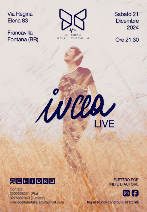 L’associazione di promozione sociale “Il Circo della Farfalla” propone un nuovo appuntamento della stagione eventi 2024/2025: sabato 21 dicembre a salire sul palco ci sarà Iucca e la sua band!