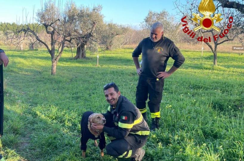 I vigili del fuoco hanno salvato un cagnolino caduto in una cisterna profonda 8 metri.