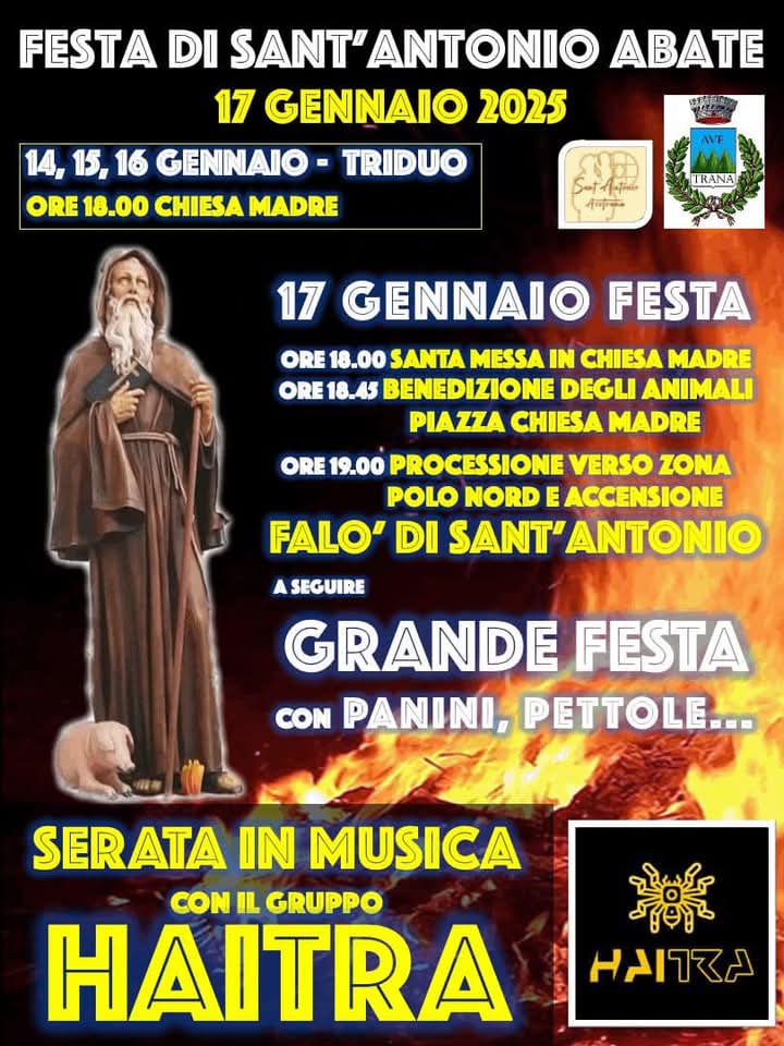 Ore 19 - Processione verso zona Polo Nord, dove avverrà la consueta benedizione e l’accensione del Falò di S. Antonio (via XXIV Maggio angolo via Toscana, di fronte alle palazzine).