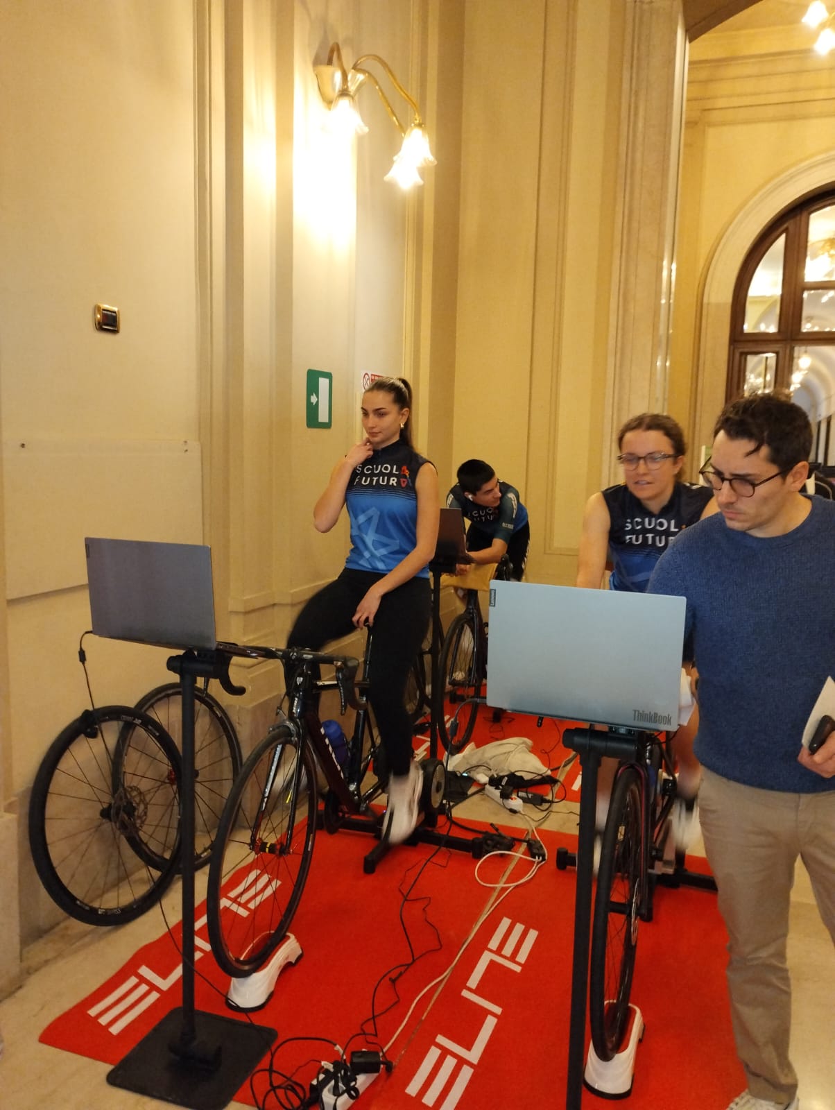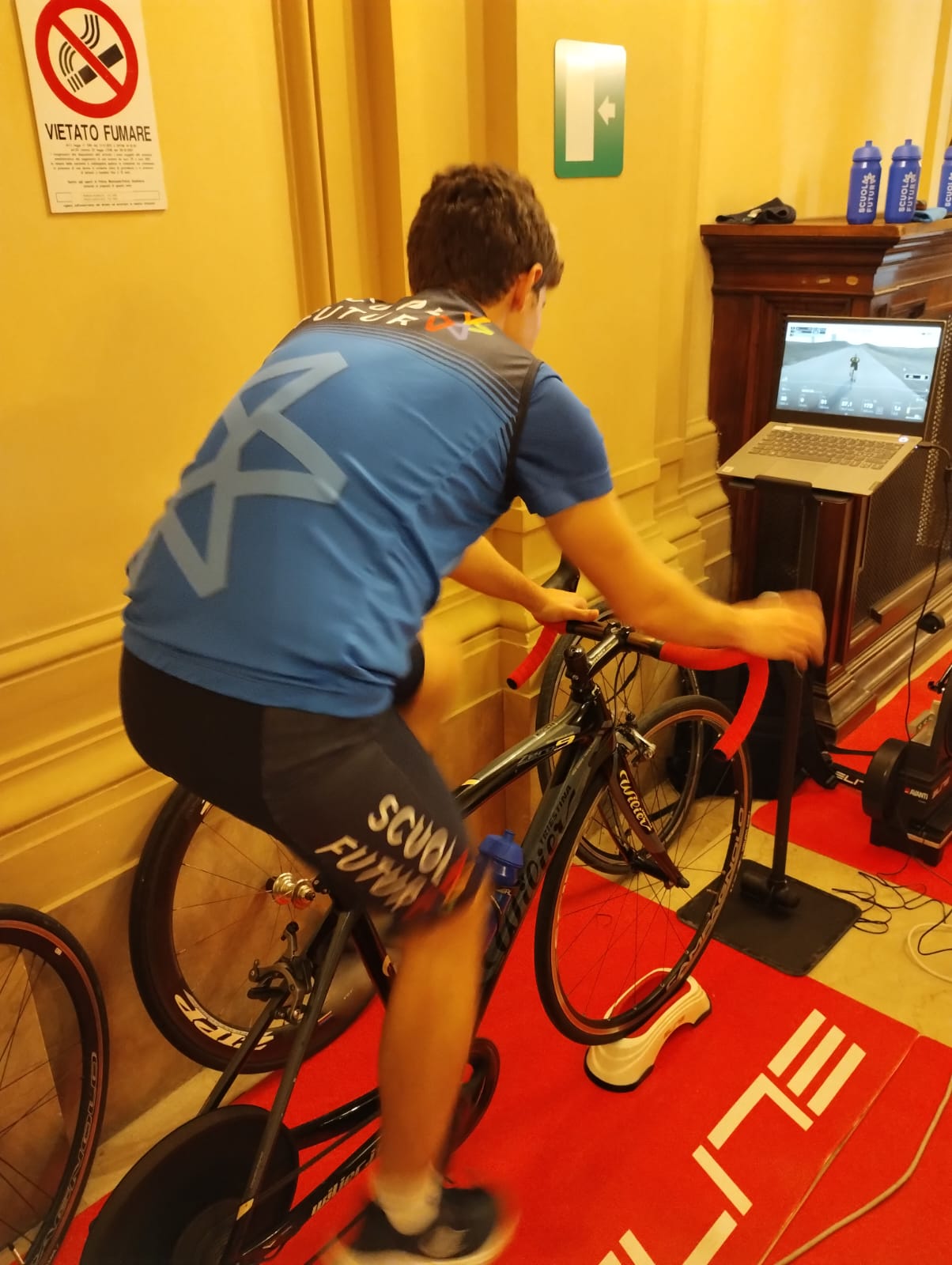 “Con la mia bici su rullo ho corso la tappa finale del Giro d’Italia, quella di Roma – racconta Michele – Dopo la prima pedalata ho elaborato un piano con i possibili valori della cadenza e della velocità e durante la seconda pedalata ho cercato di seguirlo, per migliorare i tempi”.