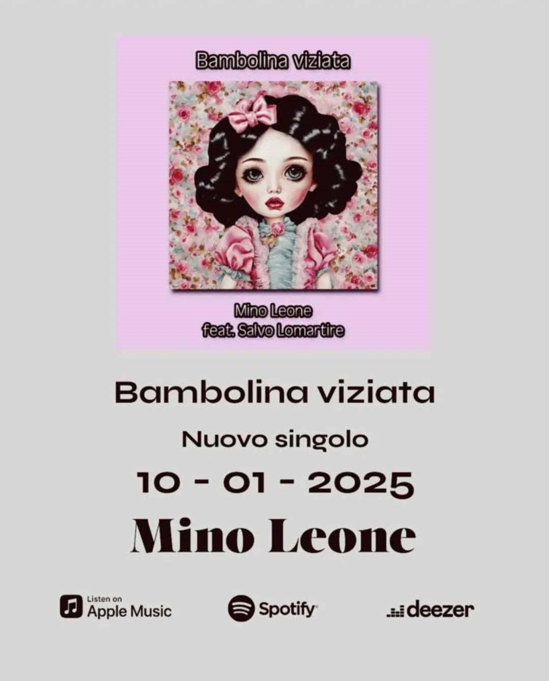 Si intitola “Bambolina viziata” ed è il primo singolo di Mino Leone.