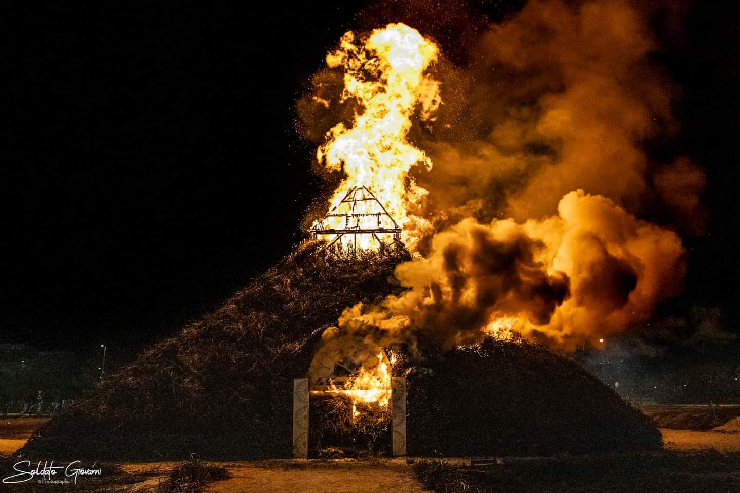 La monumentale piramide dei rituali festivi del fuoco di Puglia è pronta. Cresce l’attesa per l’accensione. Centinaia di visitatori alla grande camera in legna. Il programma dei festeggiamenti