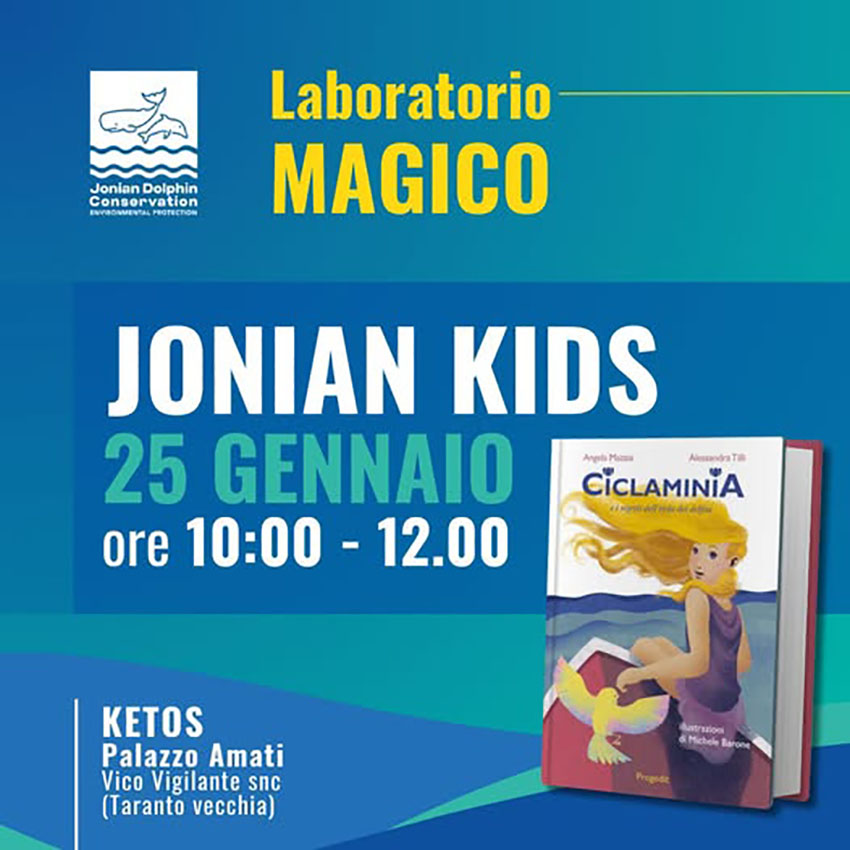 Questo laboratorio Jonian Kids è ispirato a “Ciclaminia e i segreti dell’isola dei delfini”, un libro di favole in cui la piccola fata Lulù e gli altri protagonisti, sventati i piani malefici del mago Caos, partono per un viaggio perso la favolosa isola dei delfini dove vivranno avventure meravigliose!