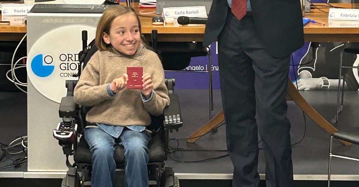 “Maria Vittoria - ha spiegato il presidente del Consiglio Nazionale dell’Ordine dei giornalisti Carlo Bartoli - aveva un sogno: diventare giornalista e intervistare il presidente Mattarella. Una parte del suo sogno è stata esaudita grazie a Fondazione Telethon. Noi abbiamo pensato di aiutarla a coltivare quel sogno consegnandole la tessera onoraria dell’Ordine dei giornalisti, un modo per incoraggiarla ad andare avanti sulla strada che ha scelto di percorrere con tanto impegno”.