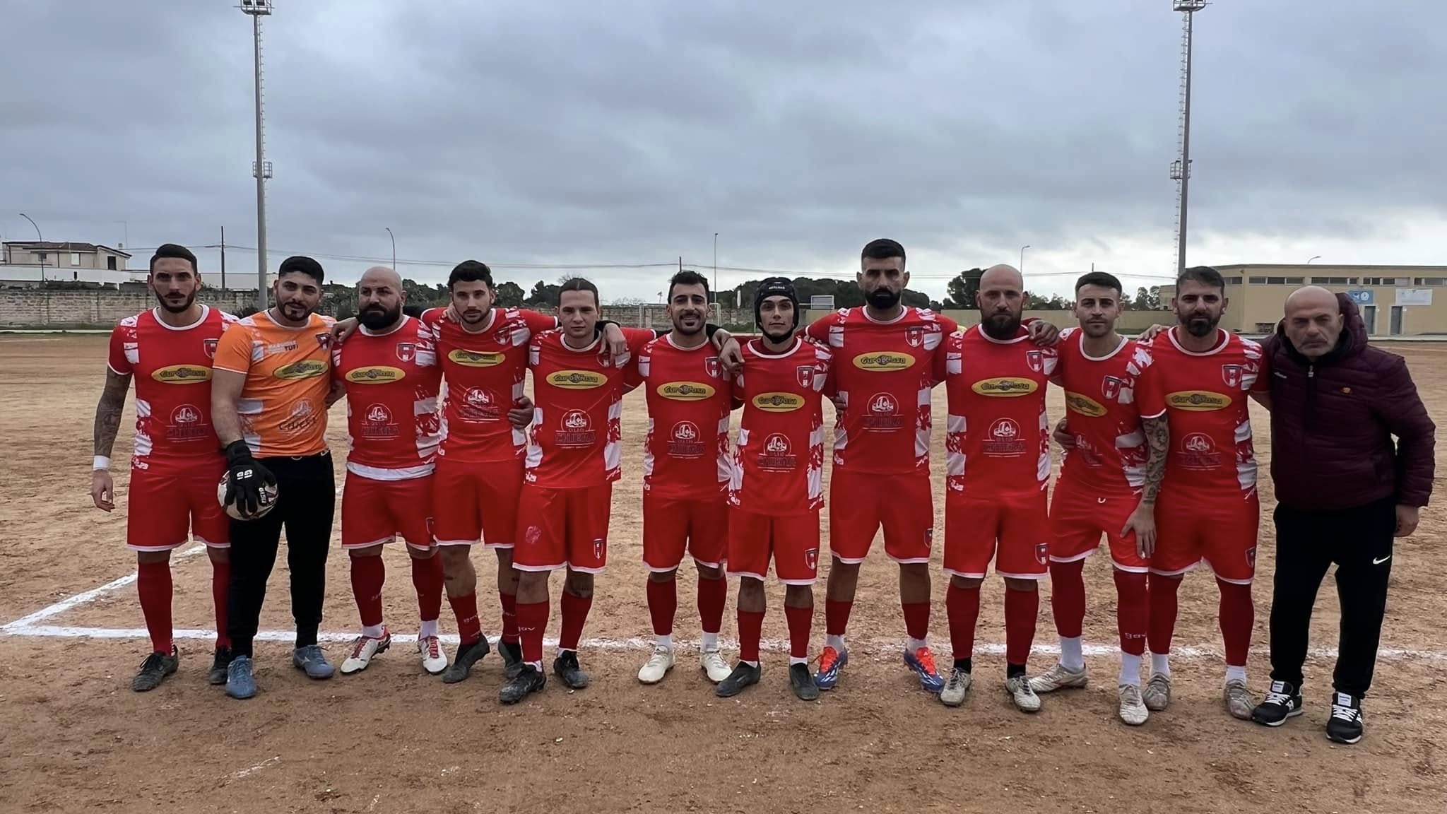 La formazione della Nuova Avetrana: Monopoli, Signorelli (75’ Stranieri), Tomaselli, DeVincentis, Franciosa, Tamborrino, T. Carrozzo, Allegrini (76’ Calò), Peluso, Nazaro, Cava. A disp.: Tursi, Grande, Scarciglia, Spada, O. Carrozzo, Medina, De Martino. All.: Frascella.