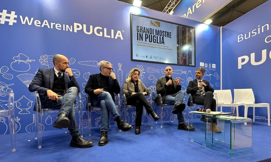 «Cogliamo l’opportunità di un evento fieristico di grande prestigio come la Bit per promuovere il prossimo appuntamento con il linguaggio dell’arte nella sua massima espressione e presentarci come un territorio che è una meta culturale ideale per chi ama i monumenti millenari, i bei paesaggi e la buona cucina», ha detto il sindaco di Mesagne, Antonio Matarrelli, mentre il consulente alla Cultura dello stesso Comune, Marco Calò, ha aggiunto: «Il percorso delle Grandi Mostre ha riscontrato un dato straordinario in termini di visitatori di un turismo non di prossimità. Riguardo allo schema collaudato – ha aggiunto -, ora volontariamente aderisce al progetto, e con entusiasmo anche il Comune di Francavilla Fontana. Quindi questo sistema pubblico-privato funziona, si arricchisce sul sostrato comune di valorizzare il territorio anche attraverso questi progetti culturali che hanno dello straordinario».