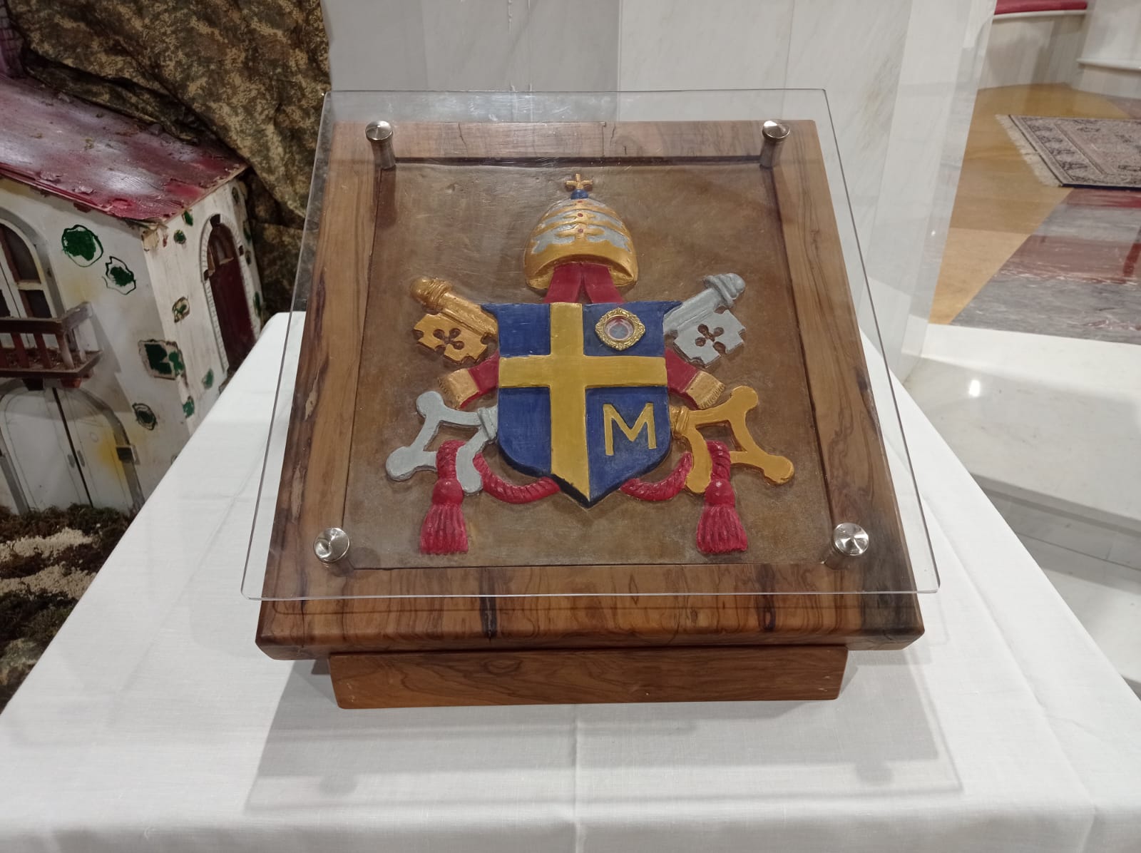 Si tratta di un Reliquiario ex capilis di Papa Wojtyla, donata dal segretario particolare di Papa Giovanni, il cardinale Stanisław Dziwisz, alla parrocchia San Marco Evangelista di Teggiano (Sa), che condivide il percorso della Rete Marciana.