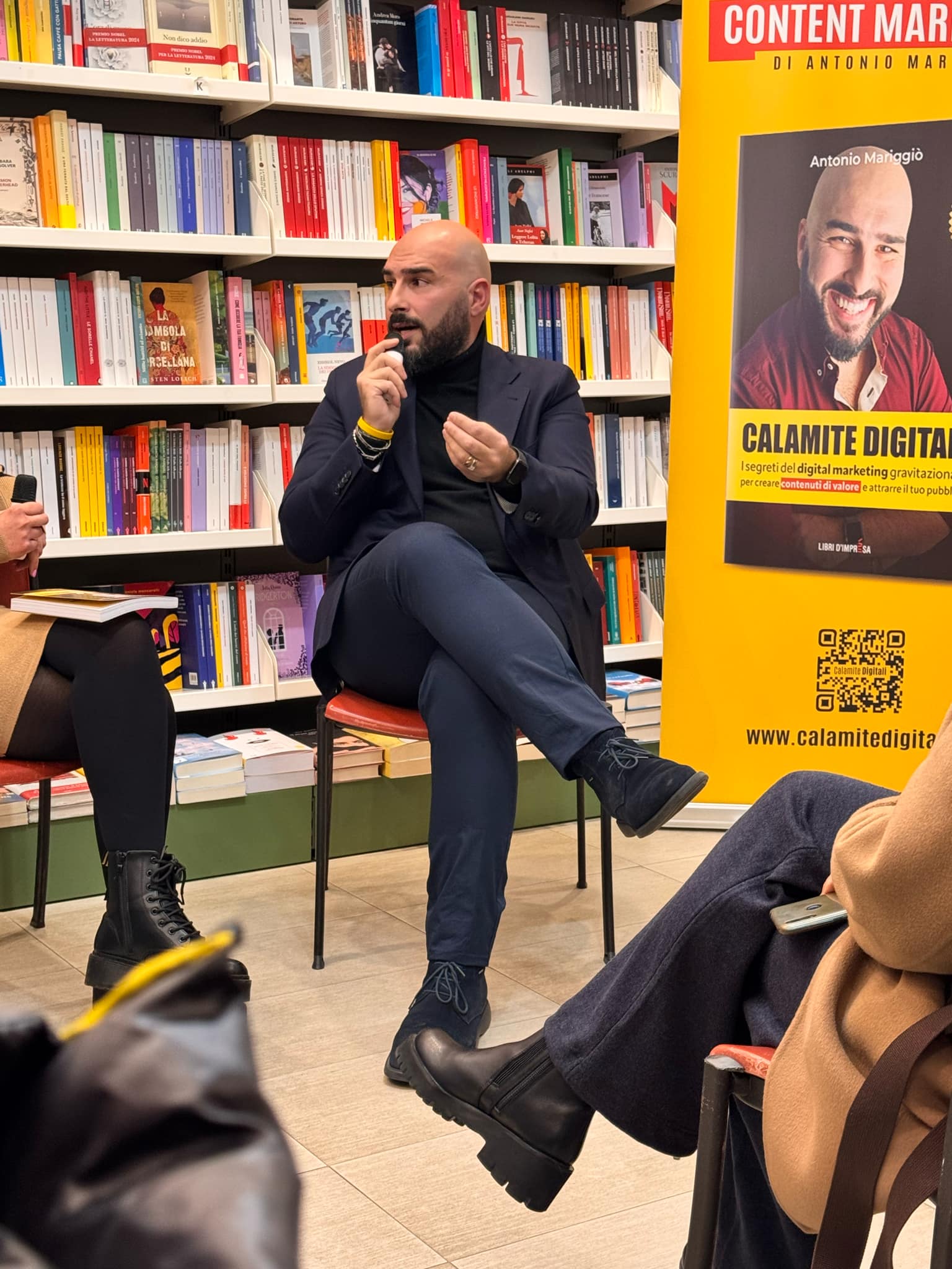 Con un approccio pratico e basato sull’esperienza, Mariggiò ha spiegato il concetto di “calamite digitali”, strumenti fondamentali per creare contenuti di valore che generano attenzione e fiducia nel lungo periodo. Durante la presentazione, Antonio Mariggiò ha dialogato con Asia Pichierri, editor e conduttrice di “Zibaldone di Pensieri” offrendo spunti di riflessione e domande su come applicare concretamente le strategie del libro nella comunicazione aziendale e personale.