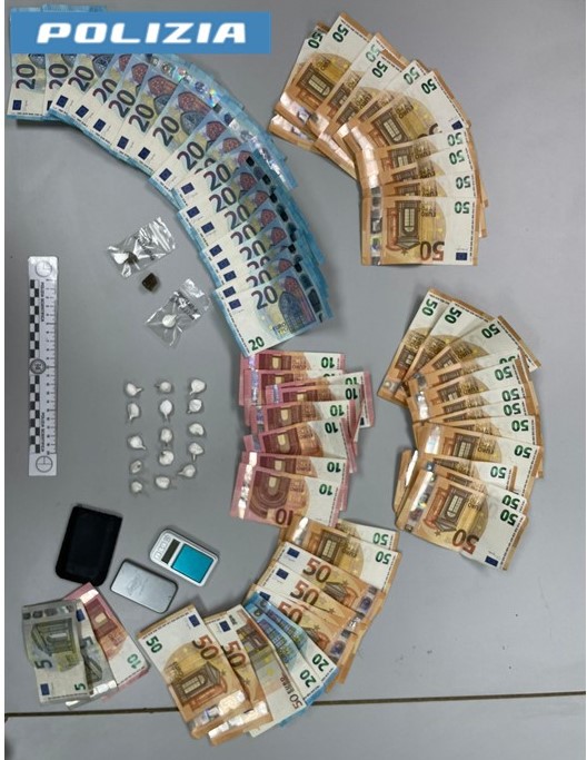 La prima sommaria perquisizione personale ha permesso di recuperare nel suo portafogli la somma di 450 euro in contanti ed un telefono cellulare dall’esame del quale sono emersi elementi che avrebbero confermato la presunta attività di spaccio.