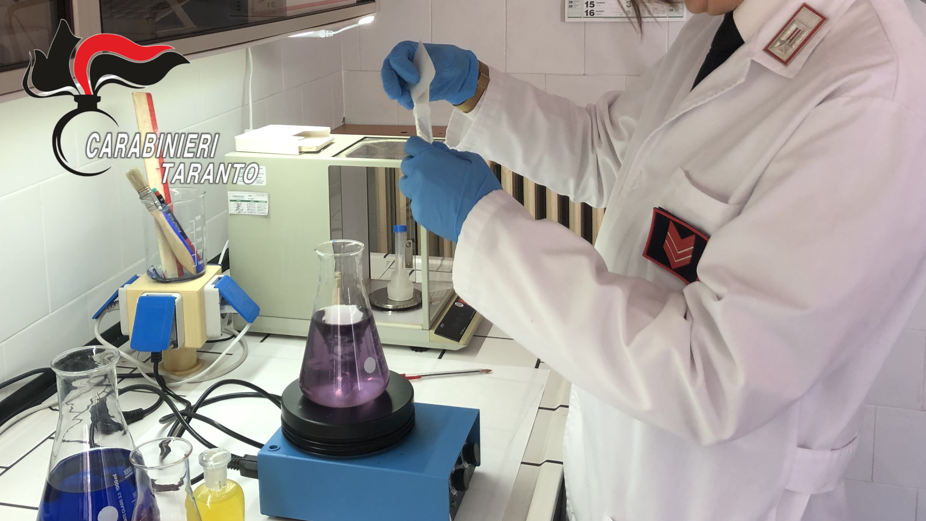 La sostanza sequestrata è già al vaglio degli specialisti del Laboratorio Analisi del Comando Provinciale Carabinieri di Taranto per le analisi tecniche di competenza.