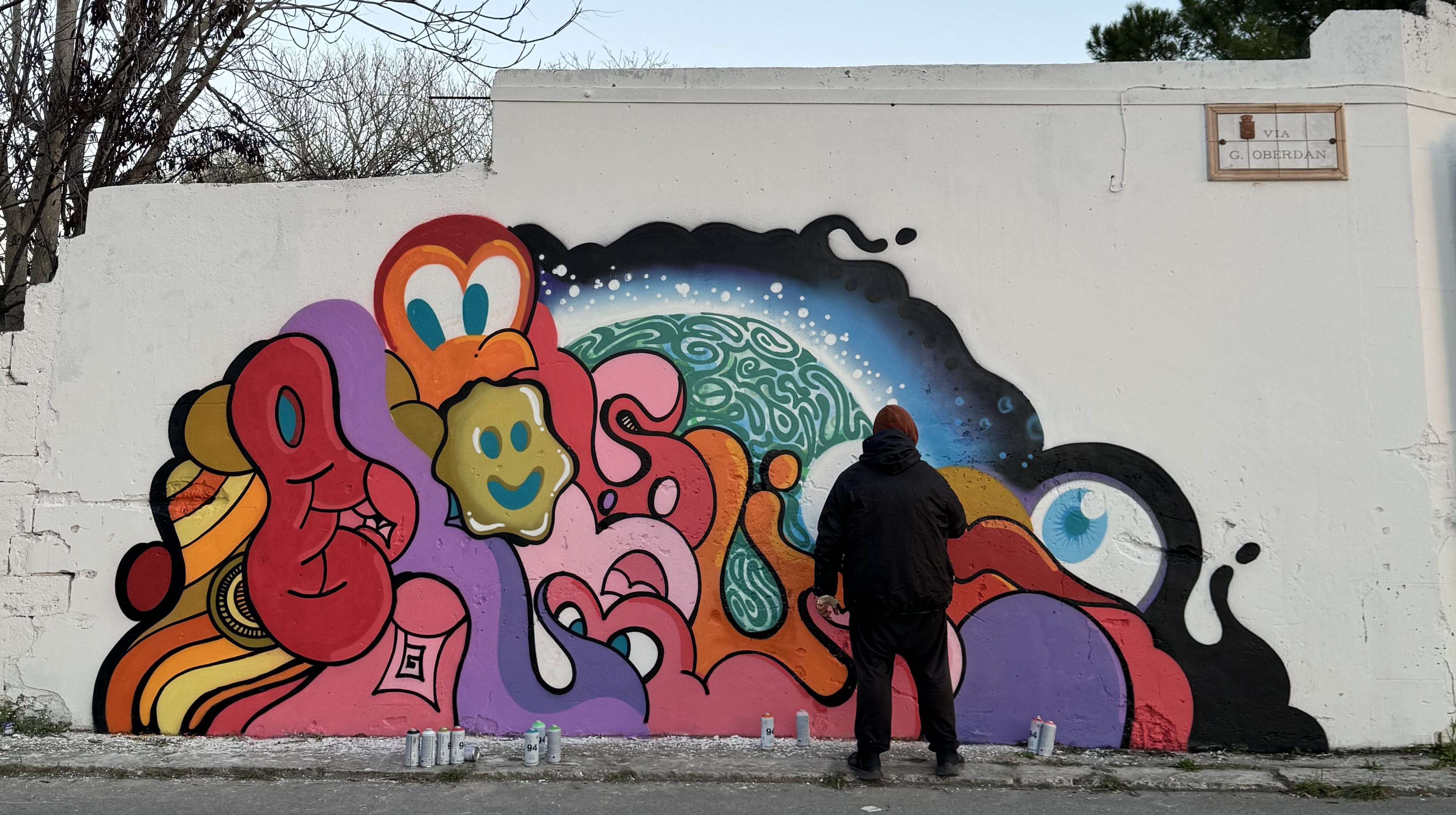 Nel secondo murale, realizzato nella giornata successiva, l’artista ha invece scelto di esplorare il tema della percezione, utilizzando forme e cromie per evocare lo spazio che i colori occupano nella nostra mente. Anche in questo caso, l’obiettivo è stato quello di offrire alla città non solo un elemento estetico, ma uno spunto di riflessione collettiva.