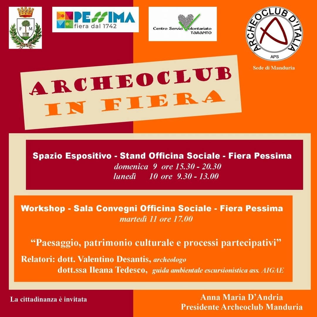 Di questo dialogheranno i soci Archeoclub Valentino Desantis, archeologo e Ileana Tedesco, guida ambientale escursionistica associata AIGAE, educatore Ambientale e alla Sostenibilità ISPRA (Istituto Superiore per la Protezione e la Ricerca Ambientale), nell'ambito di “Officina Sociale”, contenitore e "momento partecipativo” inteso come spazio di incontro con il territorio, ideato e organizzato dal CSV Taranto - Centro Servizi Volontariato, nell'ambito della Pessima 2025.