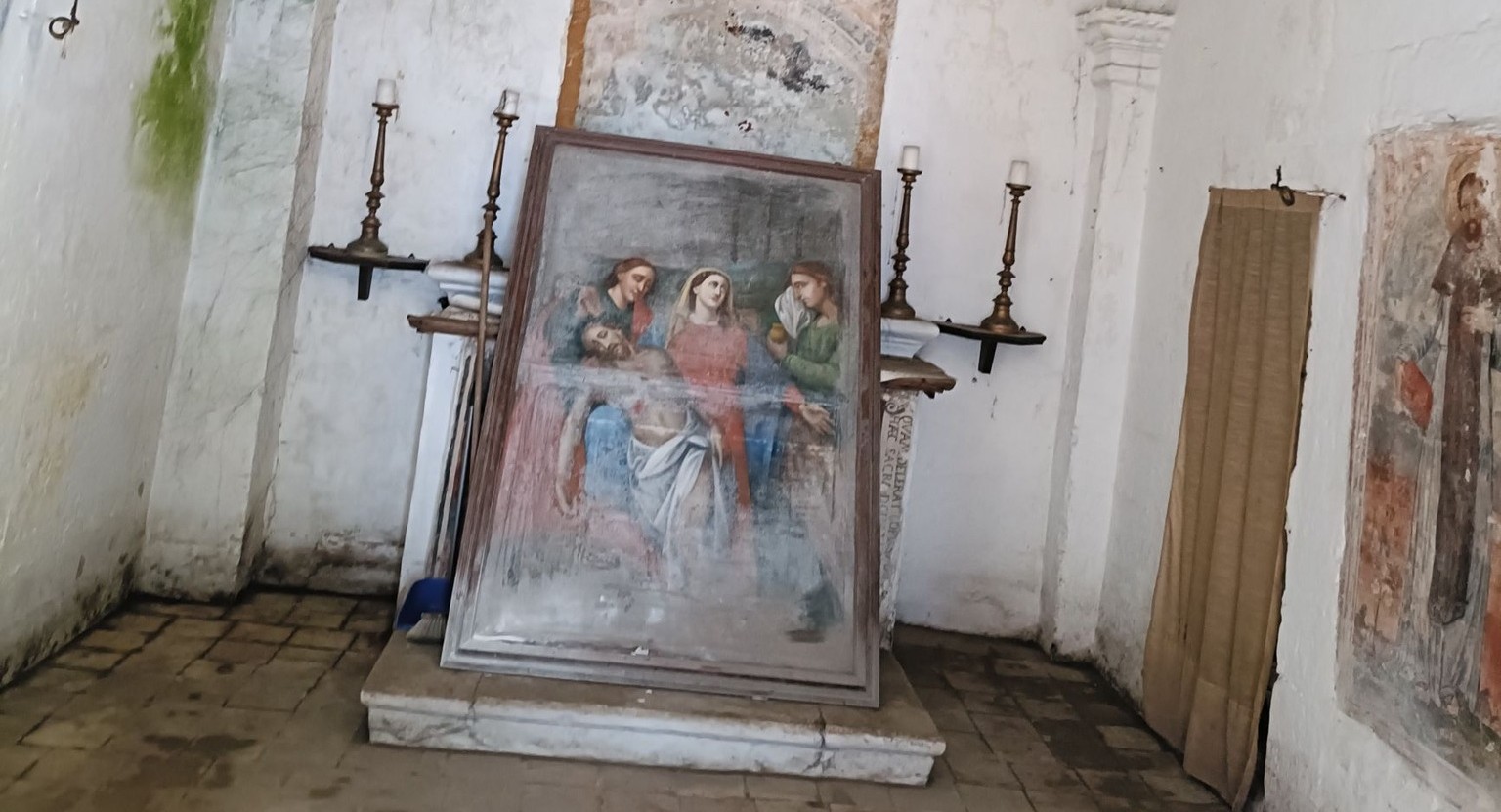 La cappella della Pietà di via San Pietro è in fase di ripulitura.