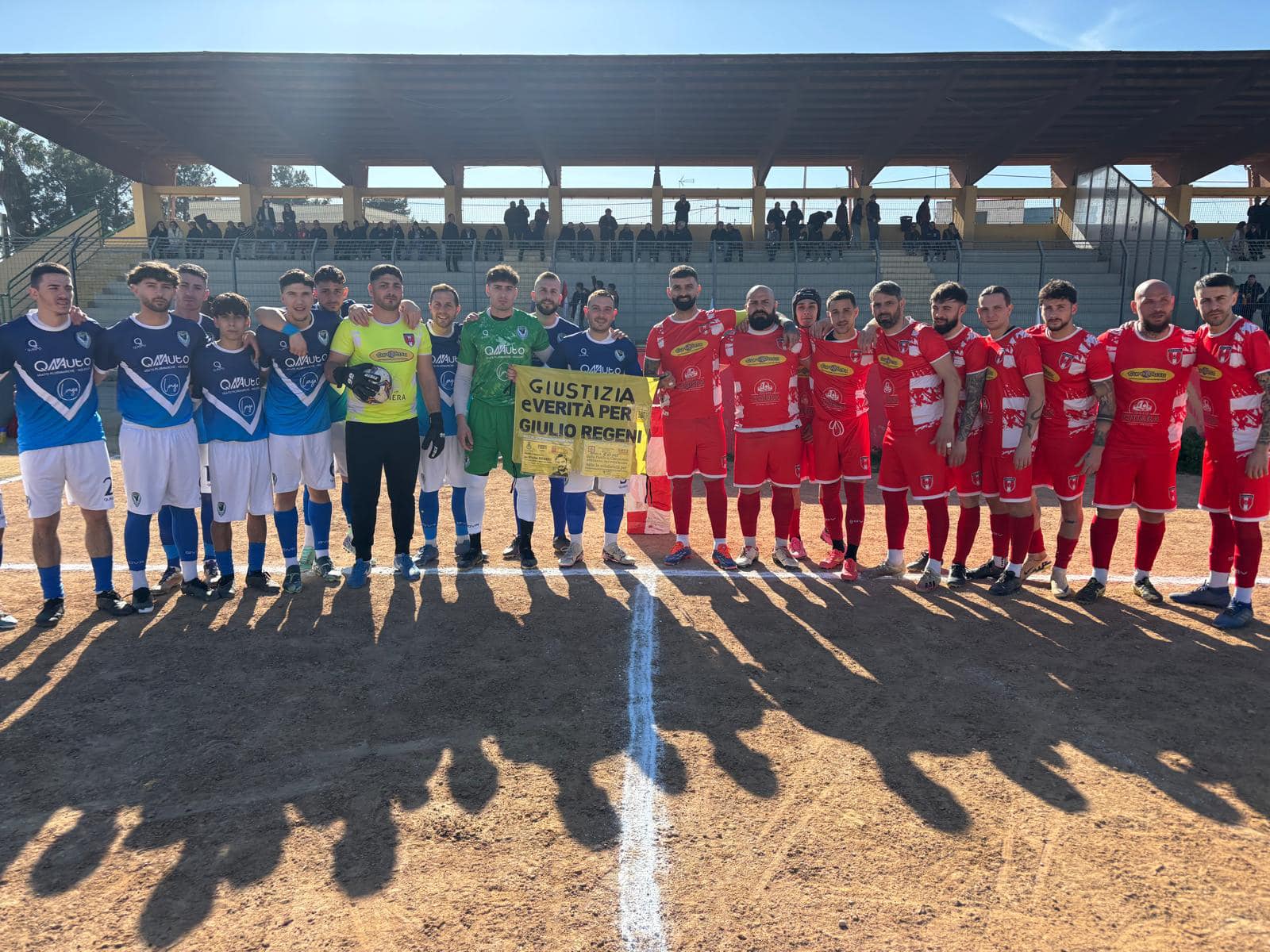 Prima della gara, le due squadre hanno voluto ricordare Giulio Regeni, auspicando la verità per questa tragedia.