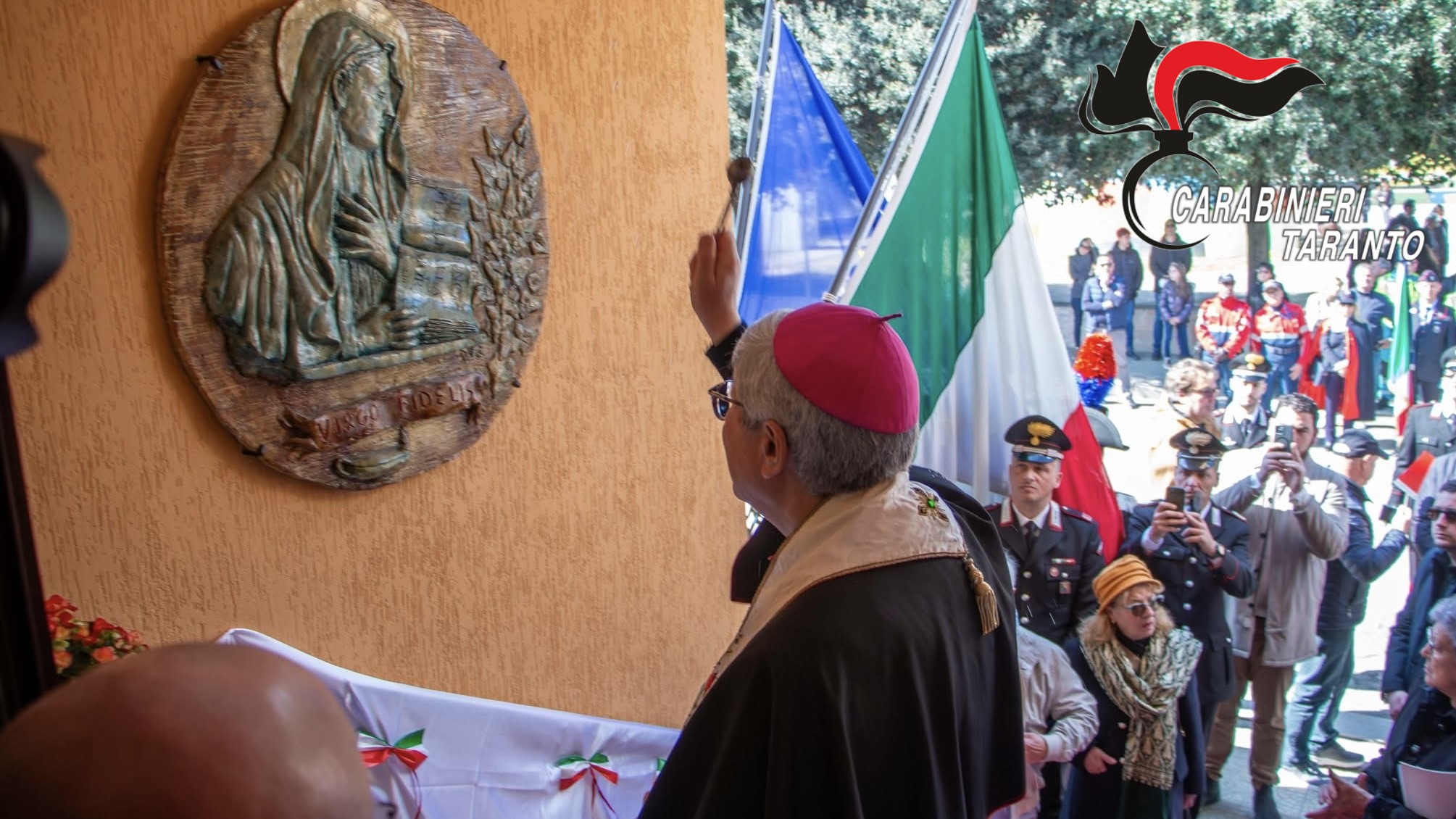 Ieri, domenica 9 marzo, presso la Stazione Carabinieri di Maruggio, in piazza Marconi, si è svolta una cerimonia di grande significato per la comunità locale. L’evento ha segnato l’inaugurazione dell’opera dell’artista maruggese Pietro Palummieri, in arte Palù, dedicata alla Virgo Fidelis, patrona dell’Arma dei Carabinieri.