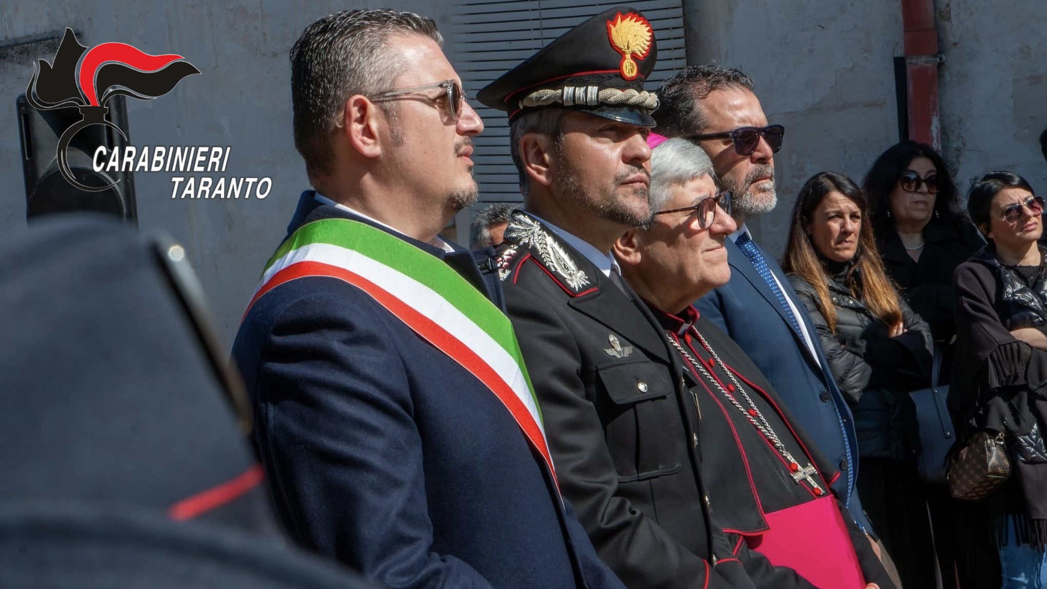 La cerimonia ha visto la partecipazione di numerose autorità civili, religiose e militari, nonché di un folto pubblico di cittadini, a testimonianza del forte legame tra Maruggio e l’Arma. Tra le personalità intervenute si citano il sindaco di Maruggio Alfredo Longo, l’onorevole Giovanni Maiorano, il vescovo della Diocesi di Oria mons. Vincenzo Pisanello, il Comandante Provinciale dei Carabinieri di Taranto Col. Antonio Marinucci, il Comandante della Compagnia Carabinieri di Manduria Cap. Alessandro Torto, il cappellano dell’Arma dei Carabinieri don Cataldo Letizia, la storica e critica d’arte professoressa Maria Vincenza Musardo Talò, il Comandante della Stazione Carabinieri di Maruggio Maresciallo Cosimo Massaro, nonché rappresentanti dell’Associazione Nazionale Carabinieri e i volontari della Confraternita Misericordia di Maruggio.