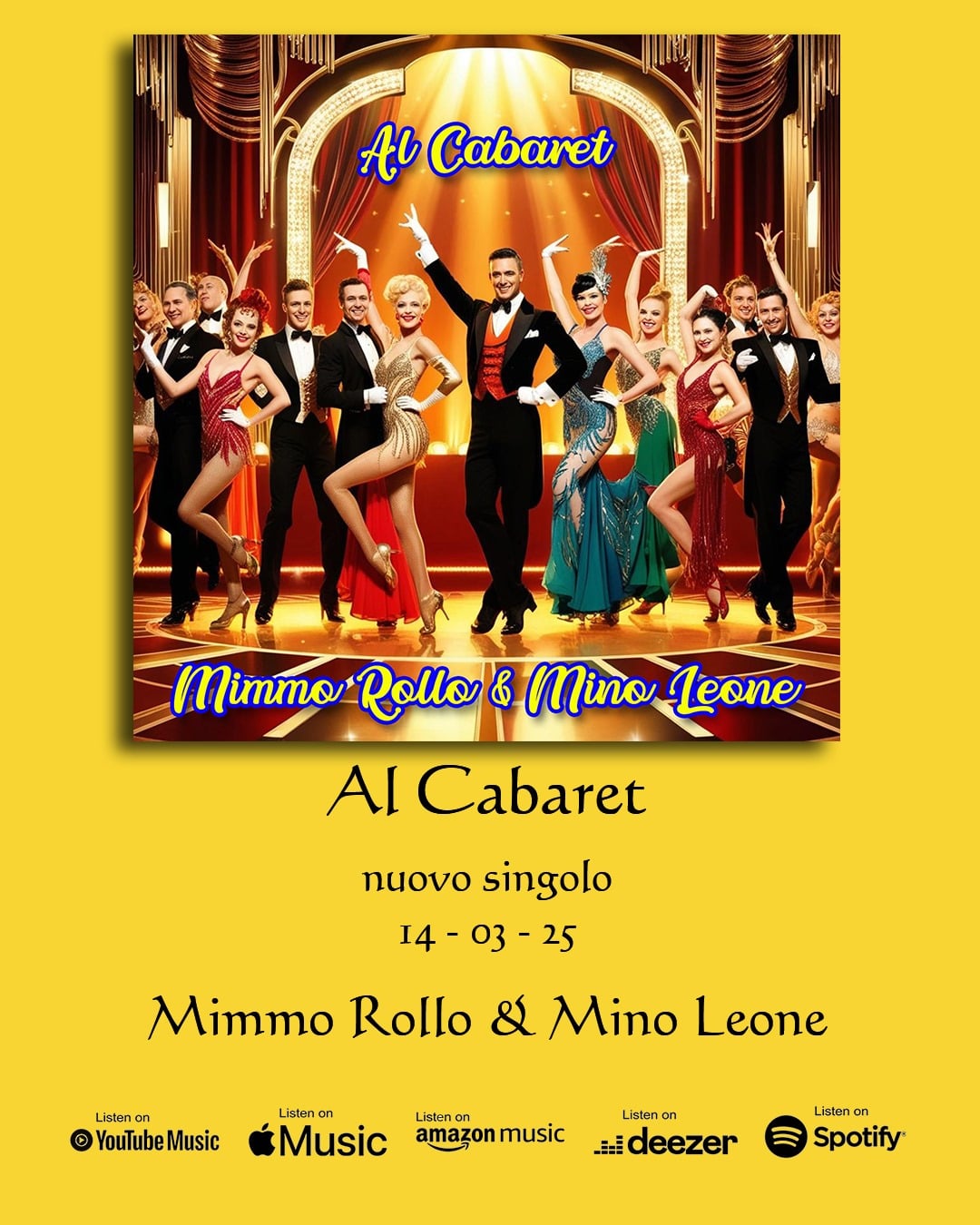Mimmo Rollo e Mino Leone, dunque, dedicano questo loro nuovo brano a quel mondo dorato del cabaret. Il brano si può ascoltare cliccando il seguente link: https://bfan.link/al-cabaret