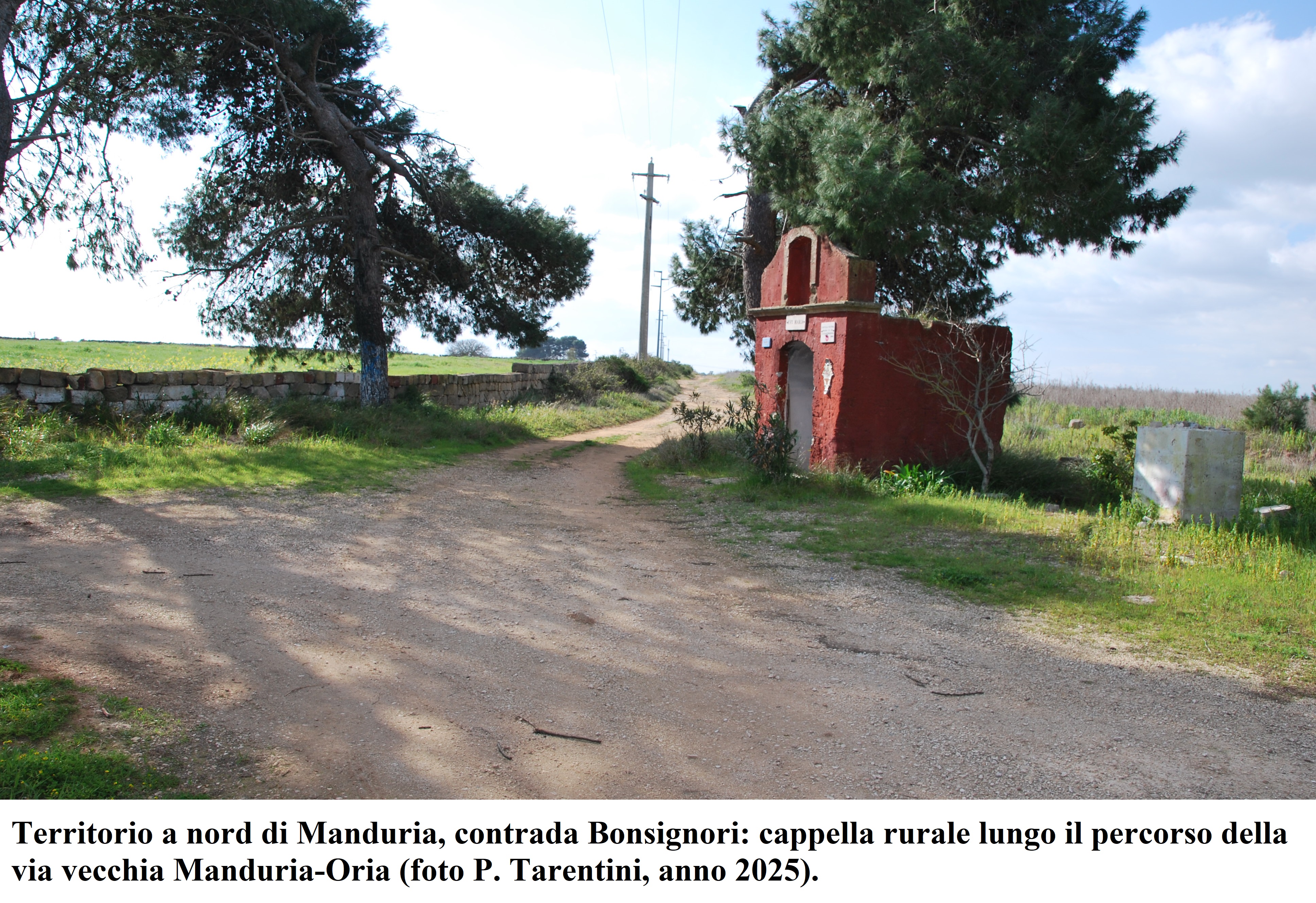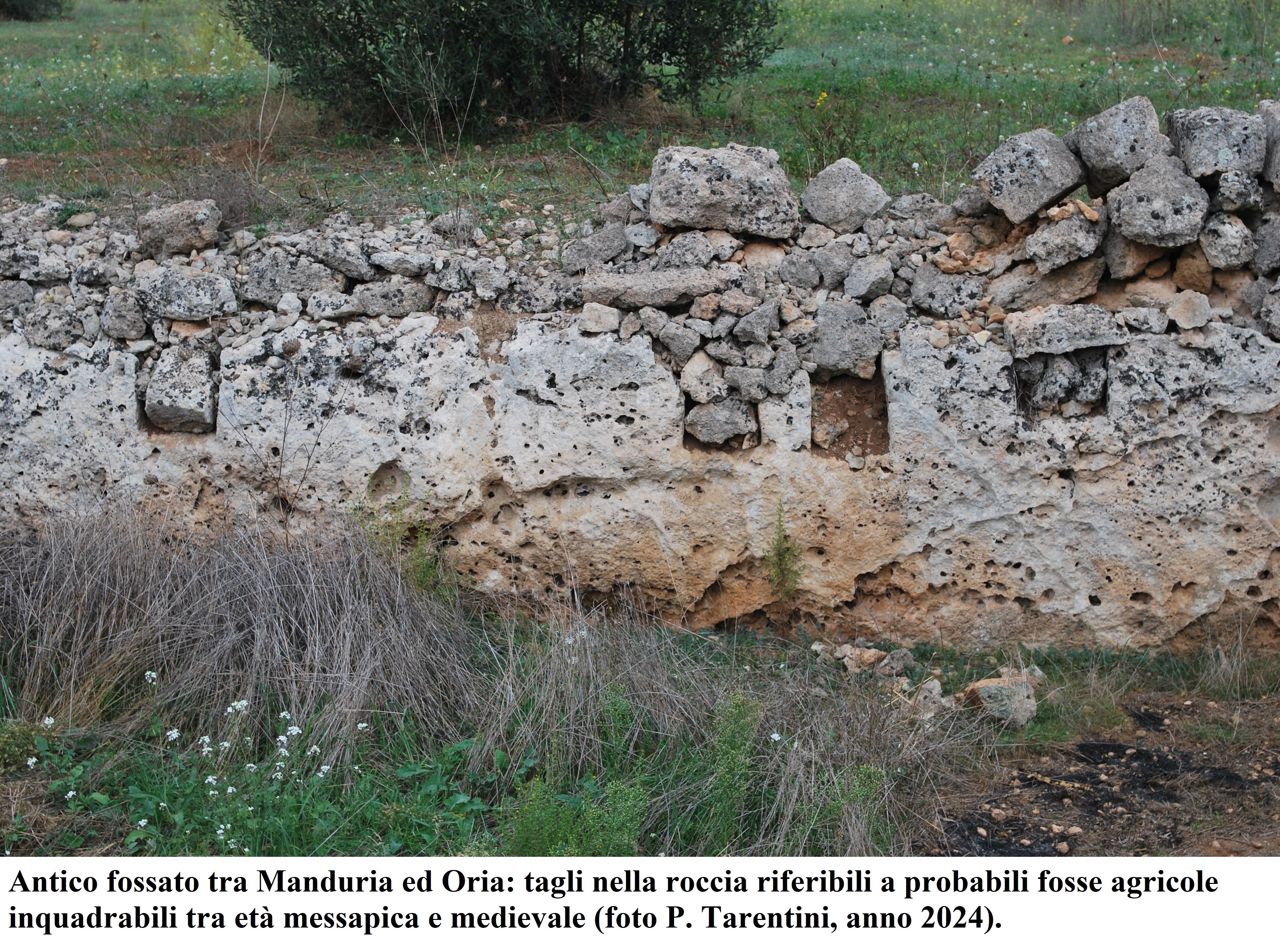 Archeologia e viabilità antica ci conducono, nel territorio a nord di Manduria, a ridosso dell’antico fossato posto a confine con l’agro di Oria; fossato che, unitamente alle specchie ed al vecchio aeroporto militare, caratterizza particolarmente questa fascia rurale (vedi precedenti contributi editi su questo stesso quotidiano online in data 19.X.2024 e 2.XI.2024).