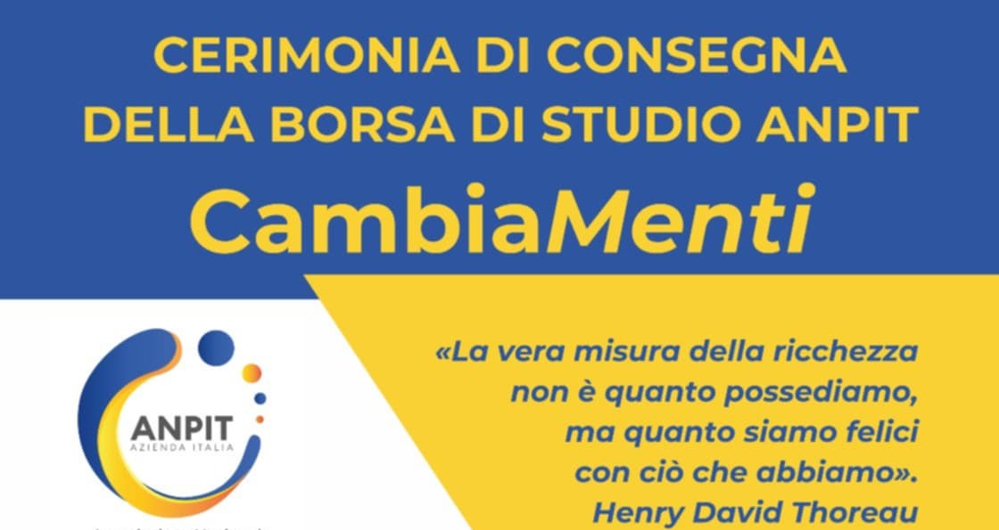 Mercoledì 19 marzo, alle ore 9:30, presso l’auditorium dell'I.I.S.S. “Del Prete – Falcone” di via Mazzini, si terrà la cerimonia di consegna della borsa di studio ANPIT “CambiaMenti”.