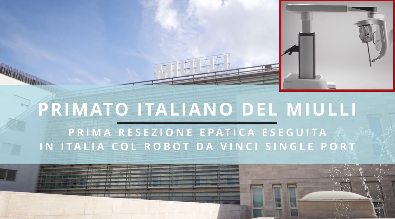 In particolare, per la prima volta in Italia, l’equipe di Chirurgia Epatobiliopancreatica, Mininvasiva e Robotica del Miulli, guidata dal prof. Riccardo Memeo, ha eseguito con successo una complessa resezione epatica utilizzando il Da Vinci Single Port. L’intervento, altamente innovativo e delicato, è stato realizzato su una paziente di 50 anni affetta da neoplasia della colecisti, trattata radicalmente attraverso resezione epatica e colecistectomia. La paziente ha potuto essere dimessa dopo soli due giorni, in condizioni generali ottime e senza complicanze post-operatorie.