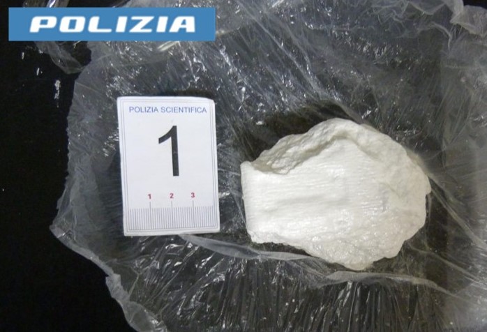 Nella tasca del giubbotto è stato recuperato un involucro con più di 100 grammi di cocaina ancora in pietra per un ingente valore economico.