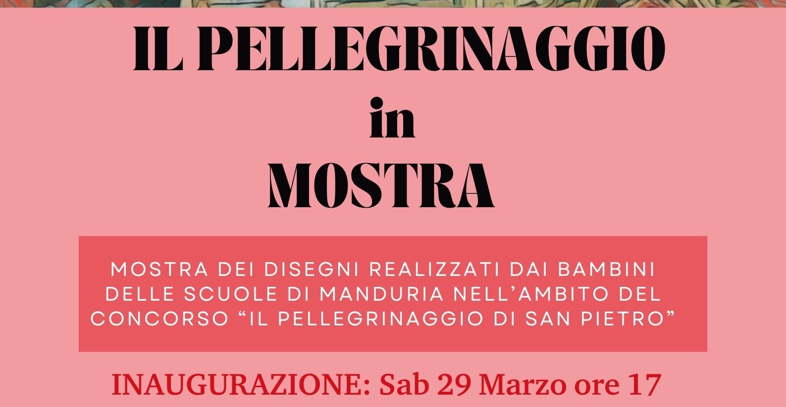 La Pro Loco di Manduria annuncia l’inaugurazione della mostra “Il Pellegrinaggio di San Pietro”, un’esposizione di disegni realizzati dai bambini che hanno partecipato all’omonimo concorso artistico. L’evento avrà luogo sabato 29 marzo presso la sede della Pro Loco, in via Pietro Maggi 7 alle ore 17.