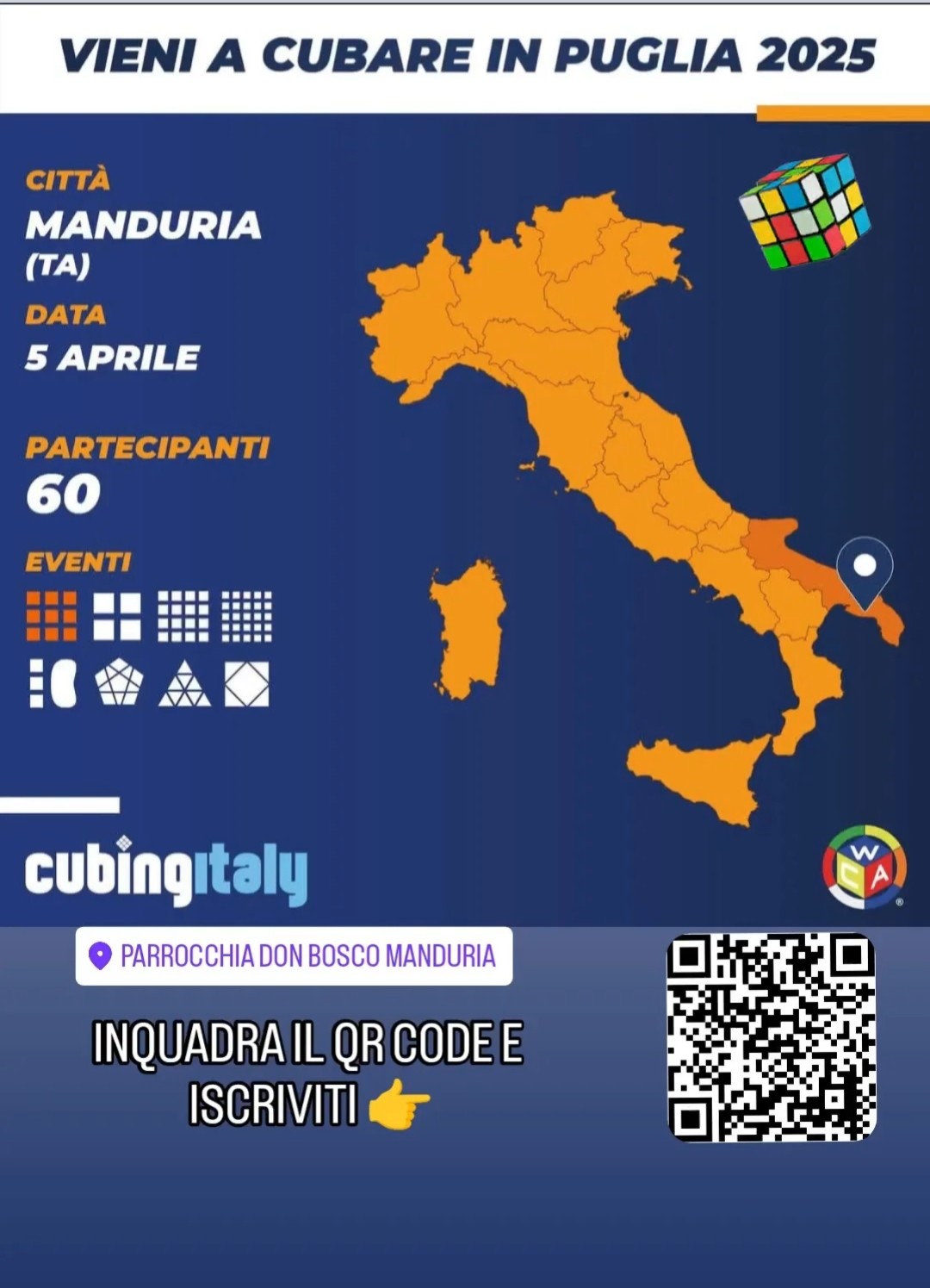 Si svolgerà, su iniziativa di Alessandro Nicolì, di Giulia Daggiano e del delegato WCA Marco Rota, nel salone della chiesa di San Giovanni Bosco