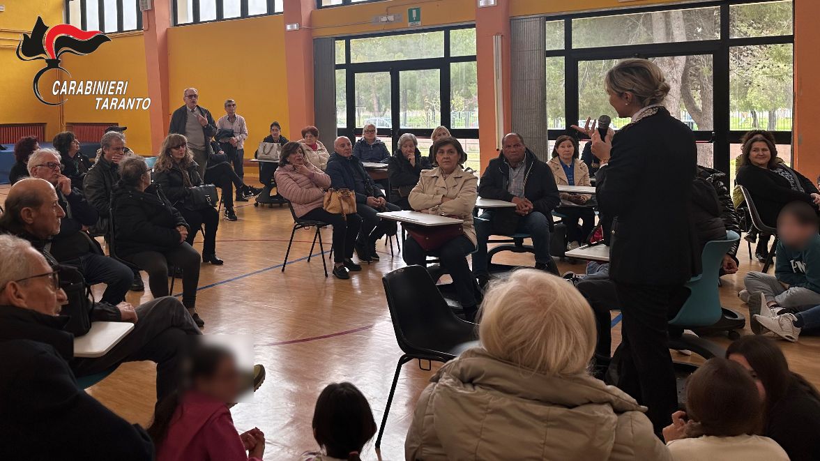 Il Comandante della Compagnia Carabinieri di Martina Franca, Capitano Silvana Fabbricatore, accompagnata dal Comandante della Stazione di San Giorgio Jonico, Luogotenente Giancarlo Inguscio, ha “chiamato a raccolta” i parenti di quegli studenti che aveva già incontrato per discutere di altri temi di delicatissima attualità (bullismo, cyberbullismo): proprio in occasione della prima conferenza infatti, alcuni degli studenti, a margine dell’incontro, avevano riferito all’Ufficiale di alcune “chiamate sospette” giunte all’indirizzo dei propri nonni, chiedendo al Capitano se si trattasse di truffe e come agire in tal senso.