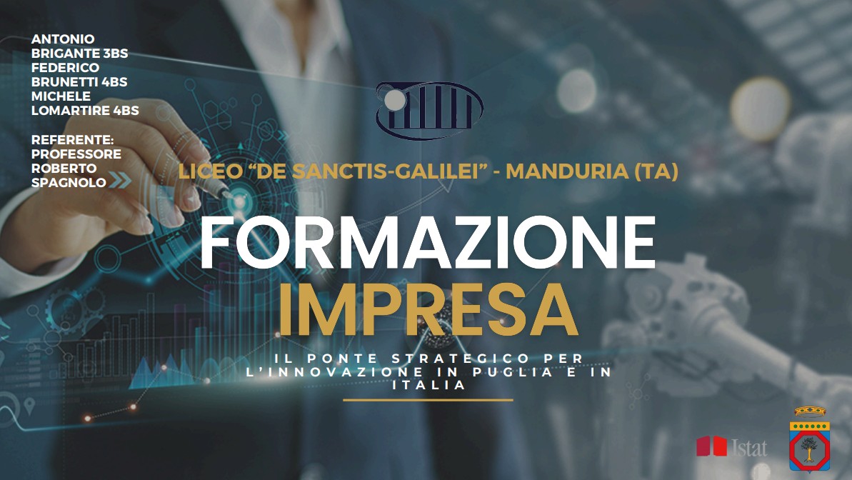 Nella seconda fase della competizione le squadre partecipanti sono state chiamate a realizzare un’elaborazione statistica sul tema “Istruzione di qualità”, in linea con l’Obiettivo 4 dell’Agenda 2030 per lo Sviluppo Sostenibile, e – per le classi III e IV – a collegarla con un ulteriore obiettivo a scelta tra i 17 previsti. La squadra del De Sanctis-Galilei ha conquistato il secondo posto, posizionandosi dopo l’ITT Michelangelo Buonarroti di Trento,con il progetto “Formazione impresa. Il ponte strategico per l’innovazione in Puglia e in Italia”, analizzando il legame virtuoso tra mondo della formazione e mondo del lavoro come chiave per la crescita del Paese.