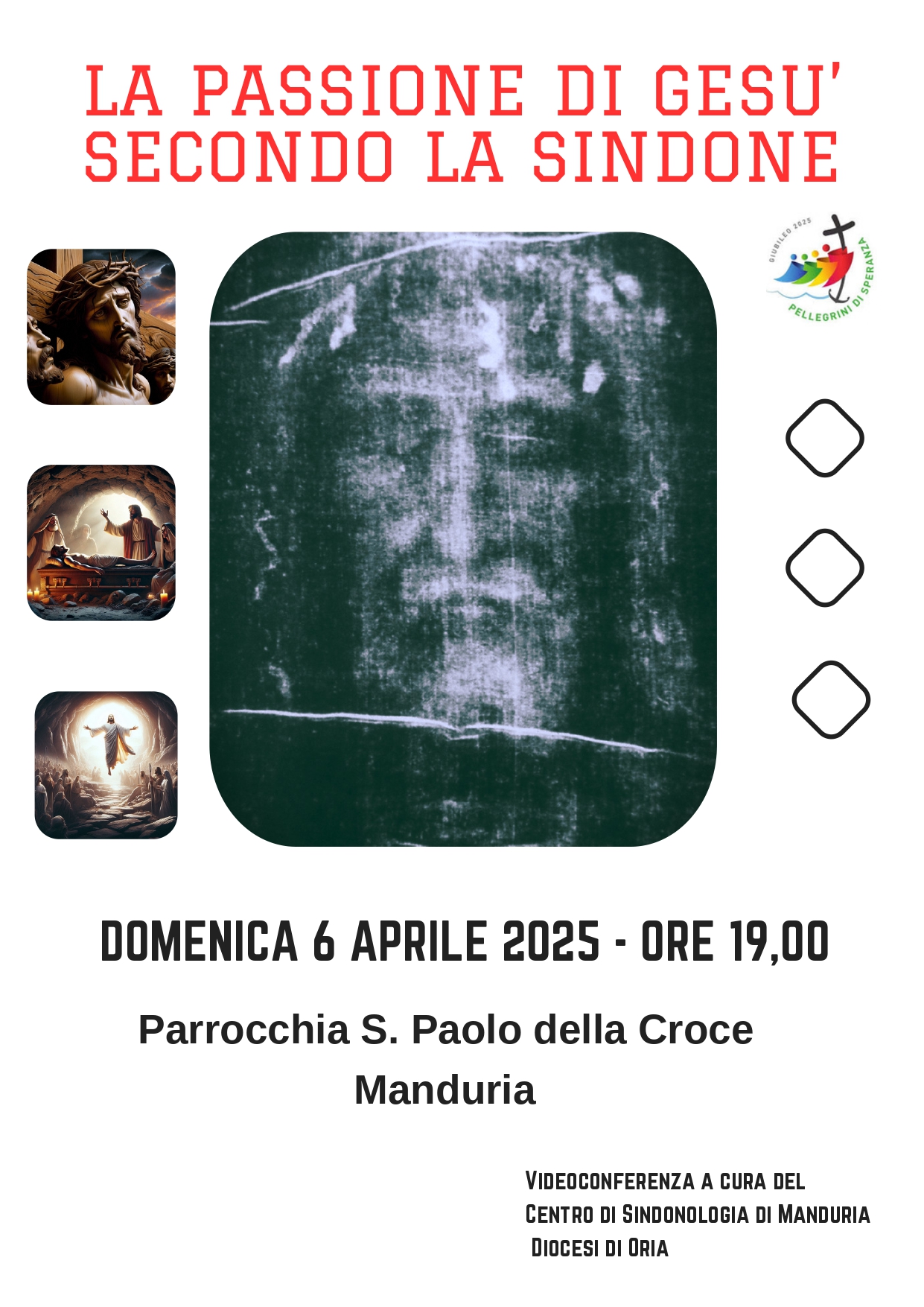 La Passione di Gesù secondo la Sacra Sindone: domenica 6 aprile, alle ore 19, conferenza presso la parrocchia di S. Paolo della Croce a Manduria a cura del Centro di Sindonologia di Manduria.