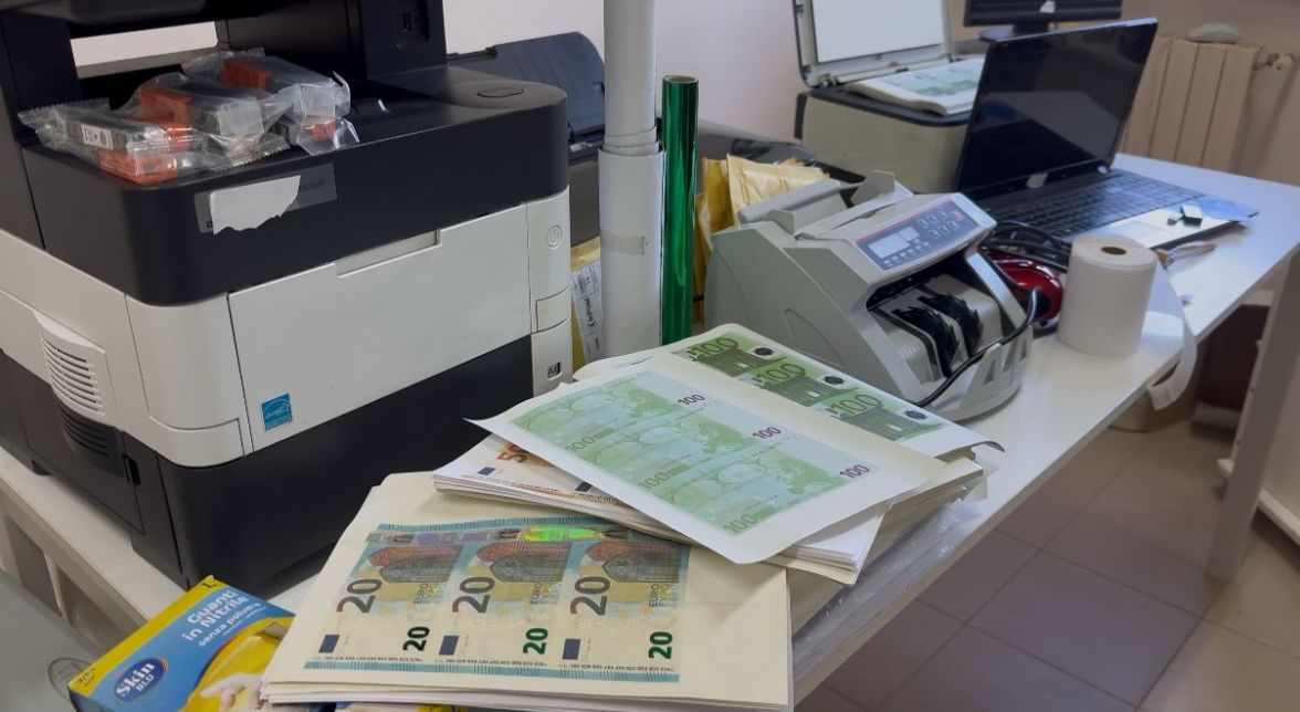 Nel corso delle perquisizioni è stata individuata e smantellata una stamperia clandestina allestita in ambito domestico, dotata di sofisticate apparecchiature in grado di produrre banconote false di elevatissima qualità tecnica, appartenenti a tre nuove e insidiose classi di contraffazione, come confermato dalle analisi tecniche svolte dal National Analysis Centre (N.A.C.) della Banca d’Italia.