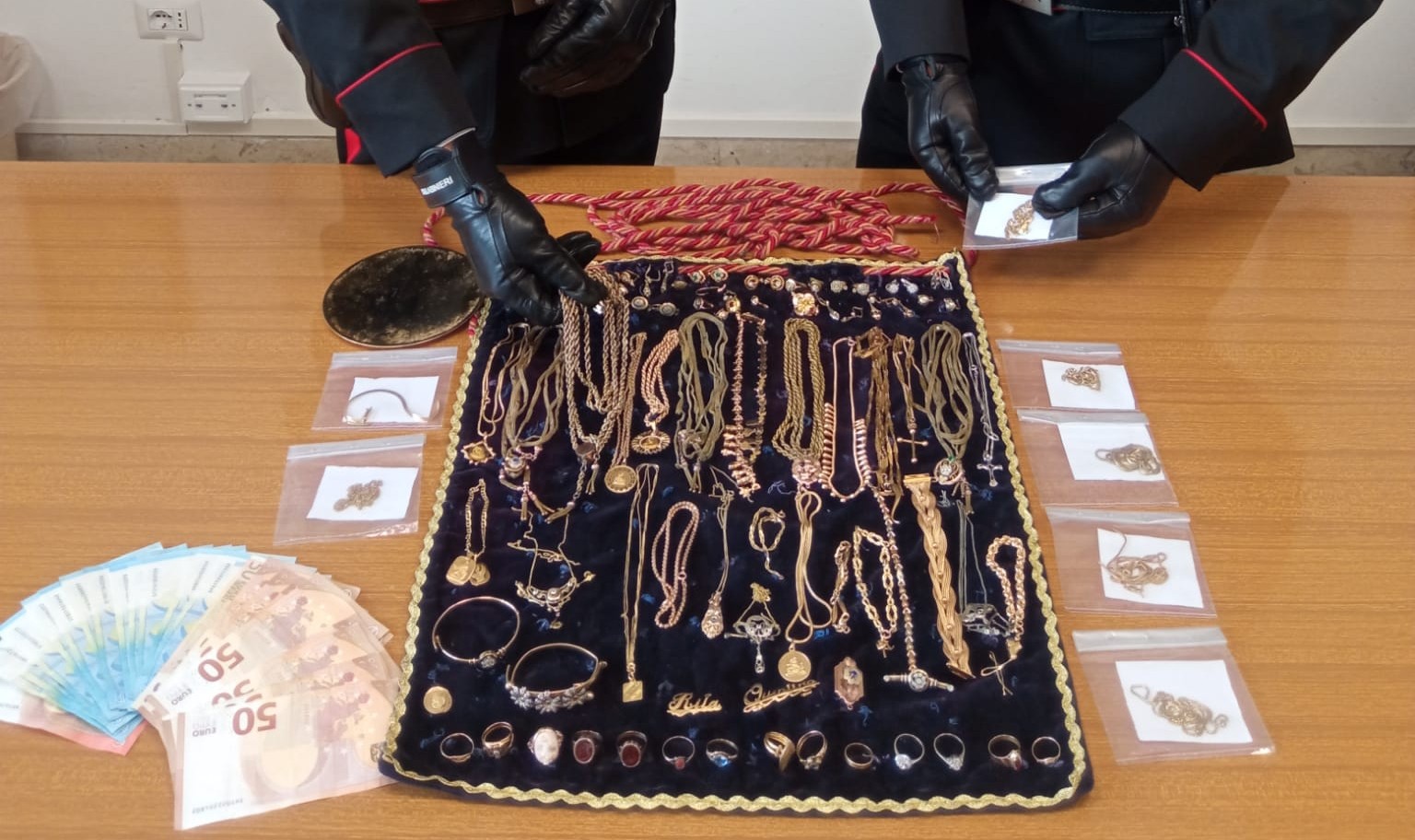 I militari dell’Arma hanno rinvenuto, presso un compro oro di un comune limitrofo, una spilla e una collana in oro. Il resto degli oggetti in oro rubati ritrovati, insieme a circa 495 grammi di sostanze stupefacenti, nell’abitazione di un 32enne