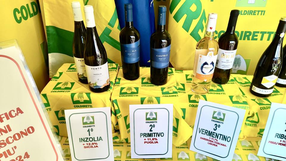 Sul podio dei vini che nel 2024 crescono di più a volume, rispetto all’anno precedente, ci sono il siciliano Inzolia, con il +12,9%, il Primitivo di Puglia (+11,8%), quasi al pari del Vermentino (Sardegna, Toscana, Liguria) con il +11,7%, seguito dalla friulana Ribolla (+11,3%). La classifica dei vini col maggior tasso di crescita in valore rispetto all’anno precedente ci sono il Vermentino al primo posto con +13,5%, seguito dal Primitivo di Puglia con il +12,6% e dal trentino Lagrein che cresce dell’11,5%