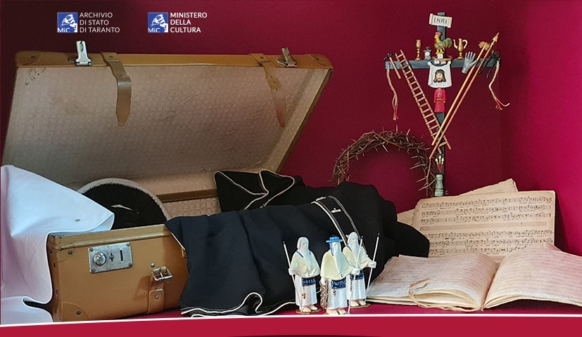 Sarà possibile ammirare inoltre una serie di oggetti provenienti dalla collezione di Ottavio Guida e donati all’Archivio di Stato di Taranto di cui fu direttore dal 1968 al 1997. La collezione comprende abiti confraternali, miniature delle due processioni maggiori, fotografie. Alcuni strumenti musicali, in prestito dal liceo “Archita” di Taranto, affiancheranno gli spartiti delle tradizionali marce eseguite dalle bande musicali che accompagnano i Riti, tra i quali “Per Emilia” unico caso che ad una persona “ancora” in vita fosse dedicata una marcia funebre.
