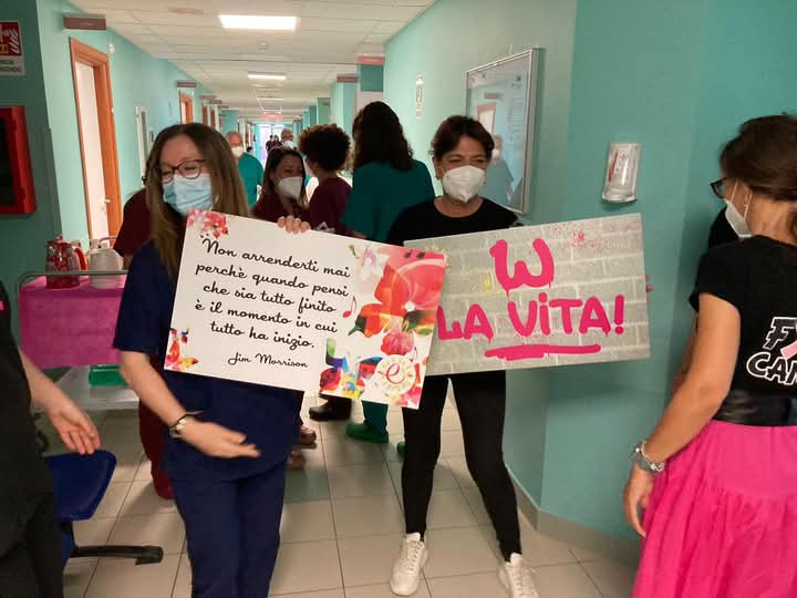 “Gentilissimi dottori, infermieri, operatori sanitari e tutte le straordinarie persone che hanno avuto un ruolo fondamentale nella mia storia. Il mio nome è Milly e nell’ottobre del 2022, a soli 32 anni, sono arrivata dinanzi alle porte del reparto di Oncologia del “Camberlingo” di Francavilla Fontana col cuore affranto, un tumore al seno esteso di 13 centimetri e due diagnosi di “nessuna speranza”. Ad accogliermi ho trovato la dottoressa Palma Fedele ed il suo magnifico team; non mi hanno mai mentito su quanto fosse critica la situazione, ma non mi hanno mai lasciato la mano, e mi hanno sempre accompagnato lungo un percorso che sarebbe stato soltanto doloroso e triste se non fosse stato per il loro ottimismo e la loro dolcezza. Non dimenticherò mai i volti ed i nomi di coloro che sono stati per me Angeli luminosi nel buio infernale della malattia.