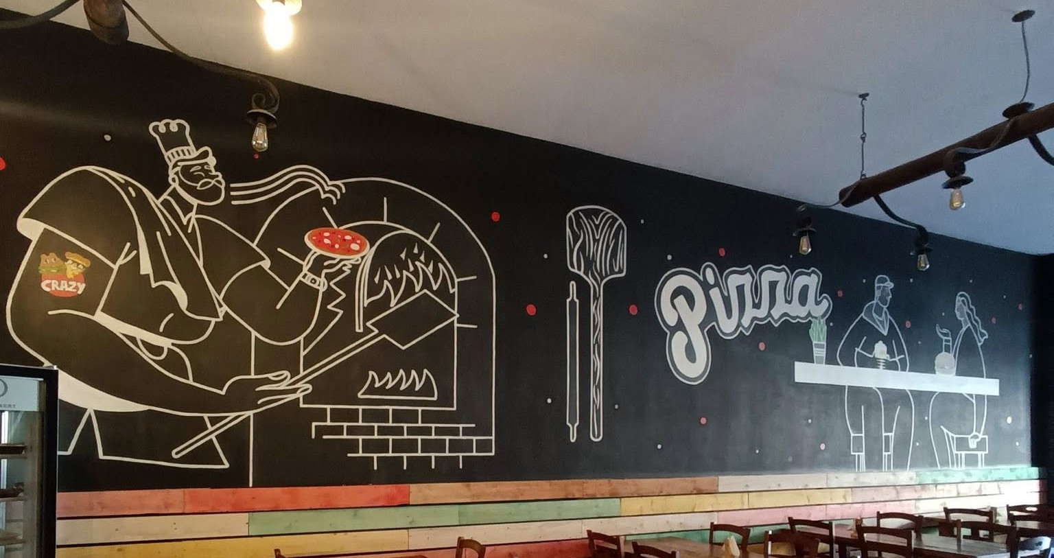 Molto più che semplici murales. Quelle realizzate da Maria Elena Guerriero nella Crazy Pizzeria di Manduria sono opere d’arte, che arricchiscono l’ambiente della struttura ricettiva di Manduria. E' proprio vero, anche l'occhio vuole la sua parte e la Crazy Pizzeria di Manduria da ora in poi potrà conquistare non solo il palato dei propri clienti…