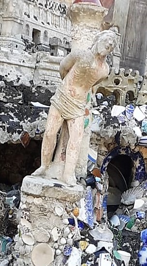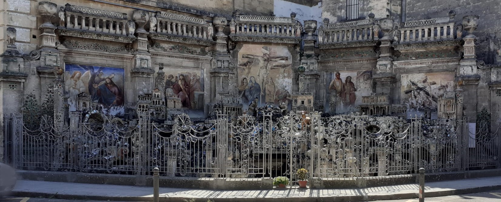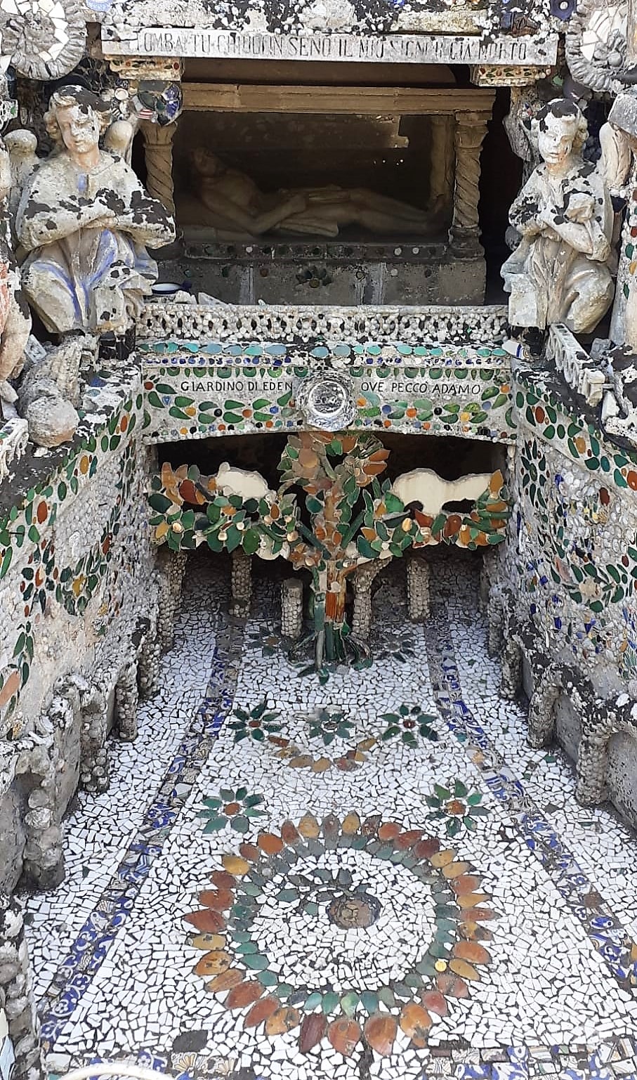 «E chi non ricorda quel vecchione piegato in mezzo al Calvario a rattoppare il suo mosaico o fra un mucchio di conchiglie, di cristalli di porcellana intento a scegliere, separare, ordinare e tutto assorto nel suo lavoro con la gioia di un avaro in mezzo a un gran tesoro! (…) Morì raccomandando il suo Calvario» (p. 243).