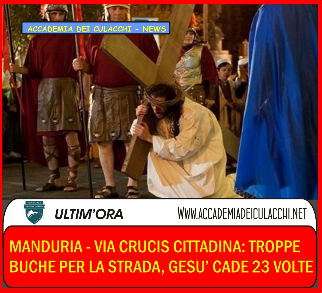 Via Crucis cittadina, troppe buche per la strada, Gesù cade 23 volte.