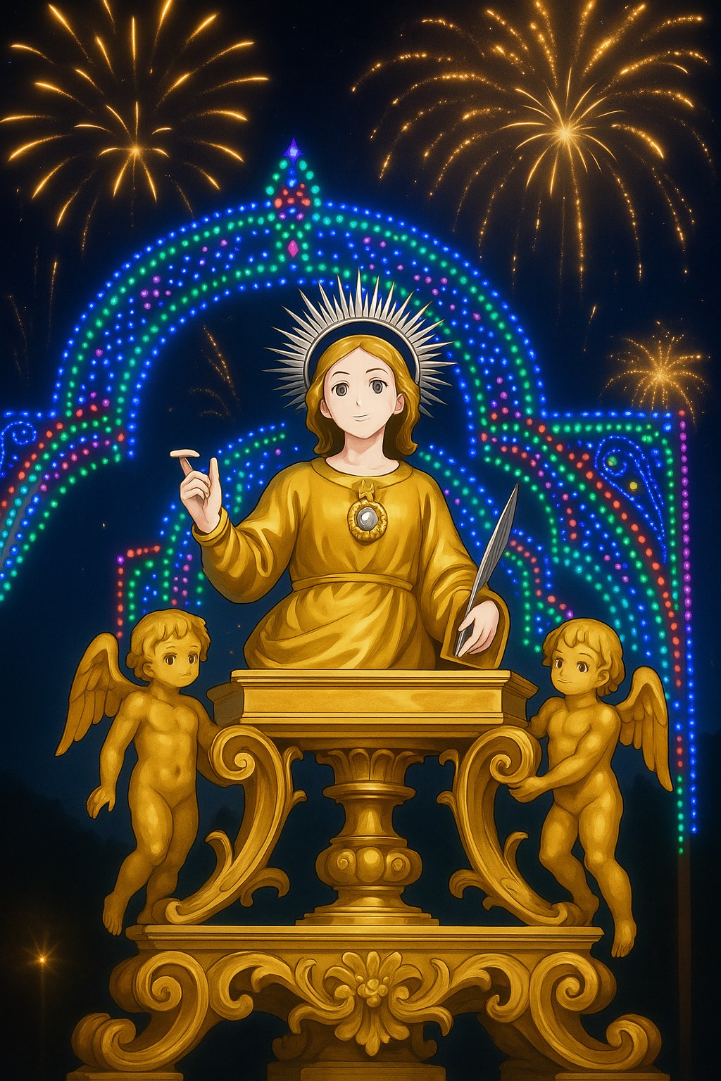 «Parlando di tradizioni locali, è importante menzionare la storia di Santa Lucia a Erchie, un piccolo borgo del Salento con circa 9.000 abitanti, situato nell’entroterra vicino al mar Ionio, tra Lecce e Taranto. Erchie è un luogo ricco di storia e cultura, il cui simbolo è rappresentato dal suo stemma, che mostra Ercole, esempio di forza e perseveranza, insieme agli occhi di Santa Lucia, simbolo di luce e verità.